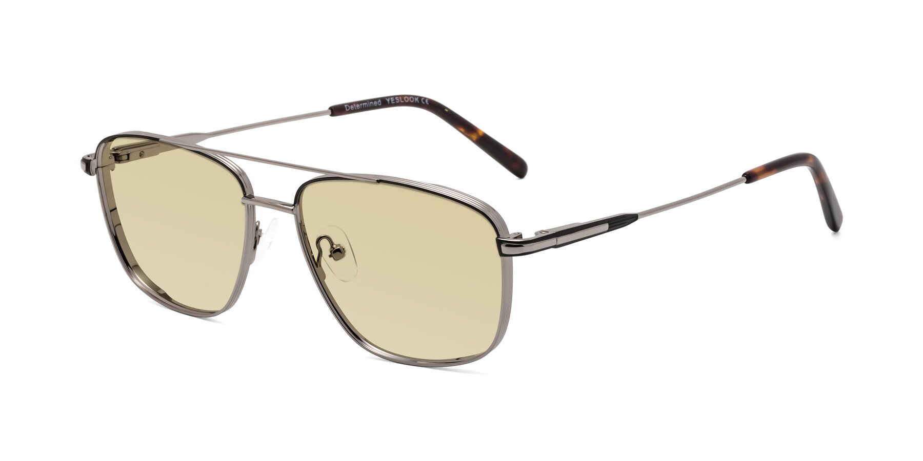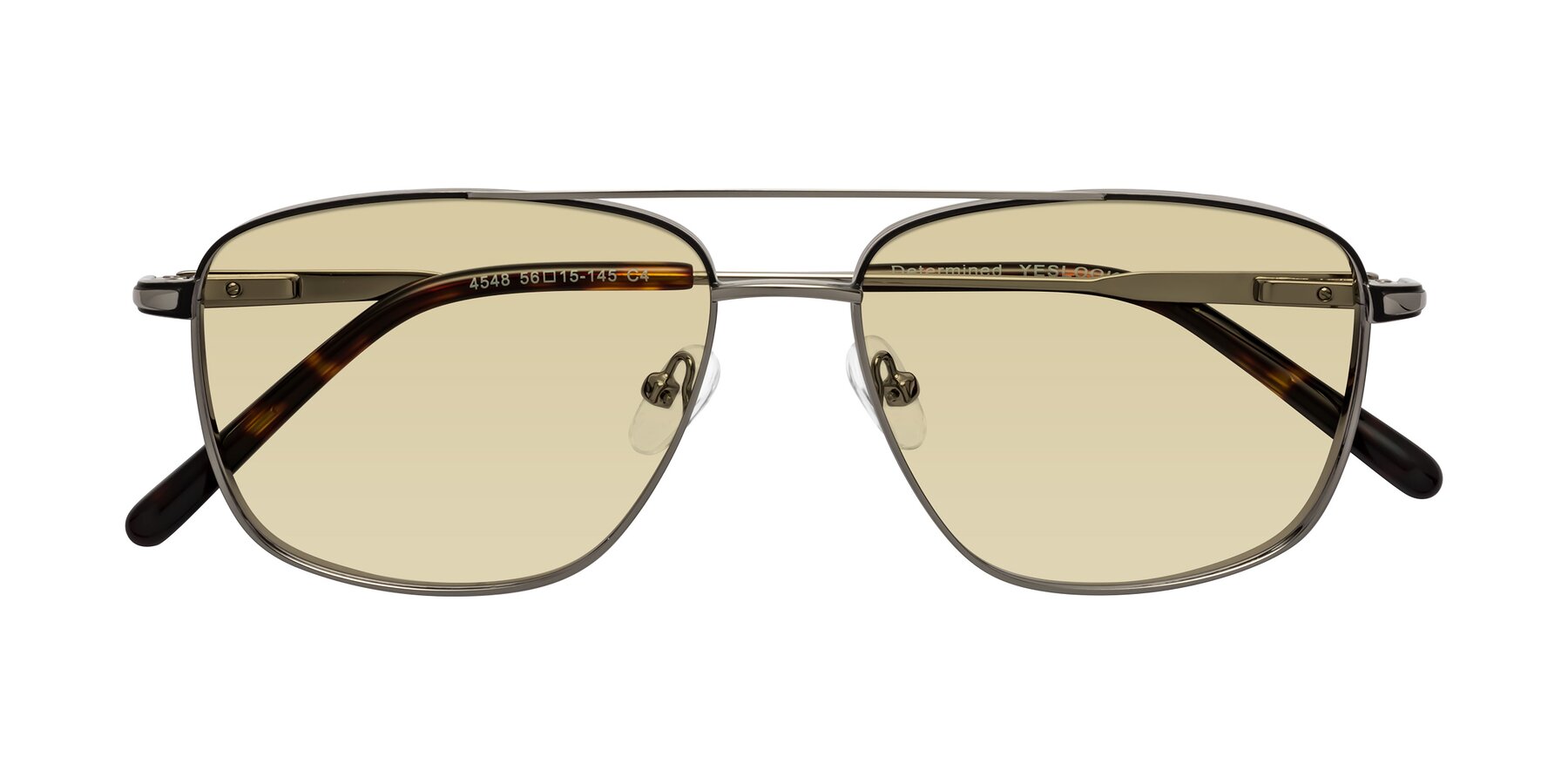 Gunmetal/Black Grandpa Double Bridge Metal Tinted Sunglasses with Light Champagne Sunwear Lenses