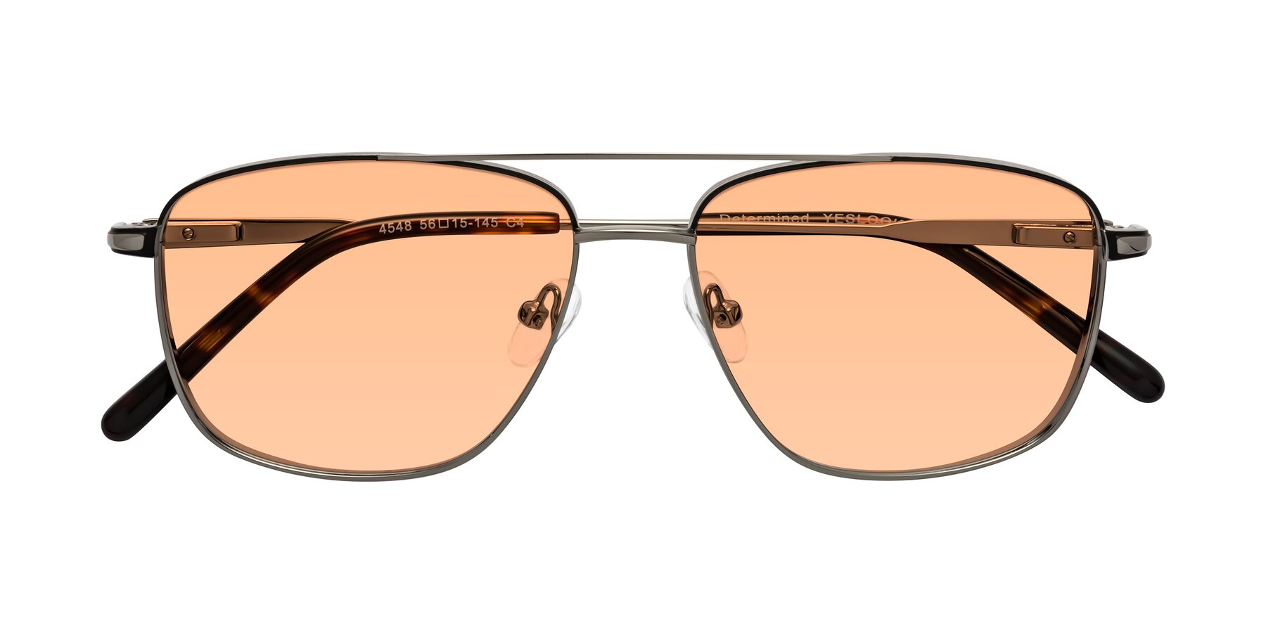Gunmetal/Black Grandpa Double Bridge Metal Tinted Sunglasses with Light Orange Sunwear Lenses