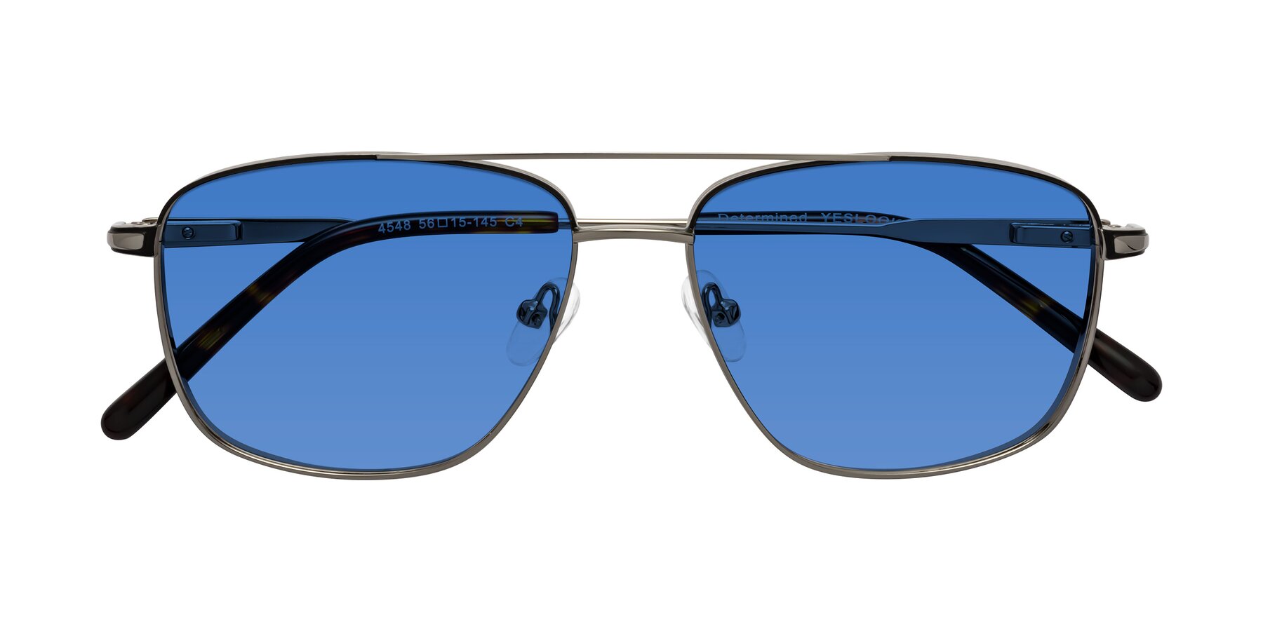 Gunmetal/Black Grandpa Double Bridge Metal Tinted Sunglasses with Blue Sunwear Lenses