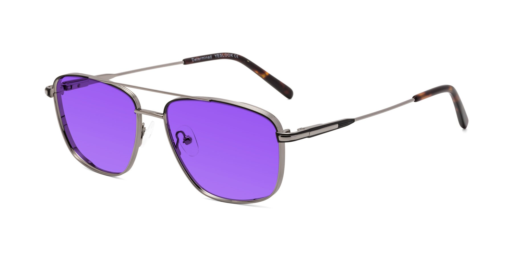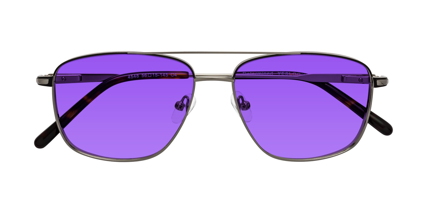 Gunmetal/Black Grandpa Double Bridge Metal Tinted Sunglasses with Purple Sunwear Lenses