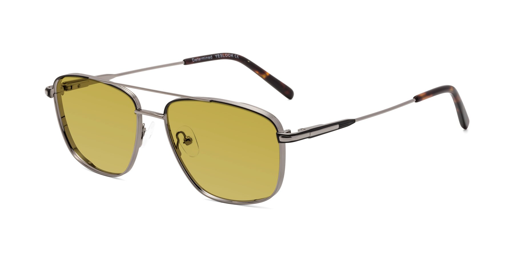 Gunmetal/Black Grandpa Double Bridge Metal Tinted Sunglasses with Champagne Sunwear Lenses