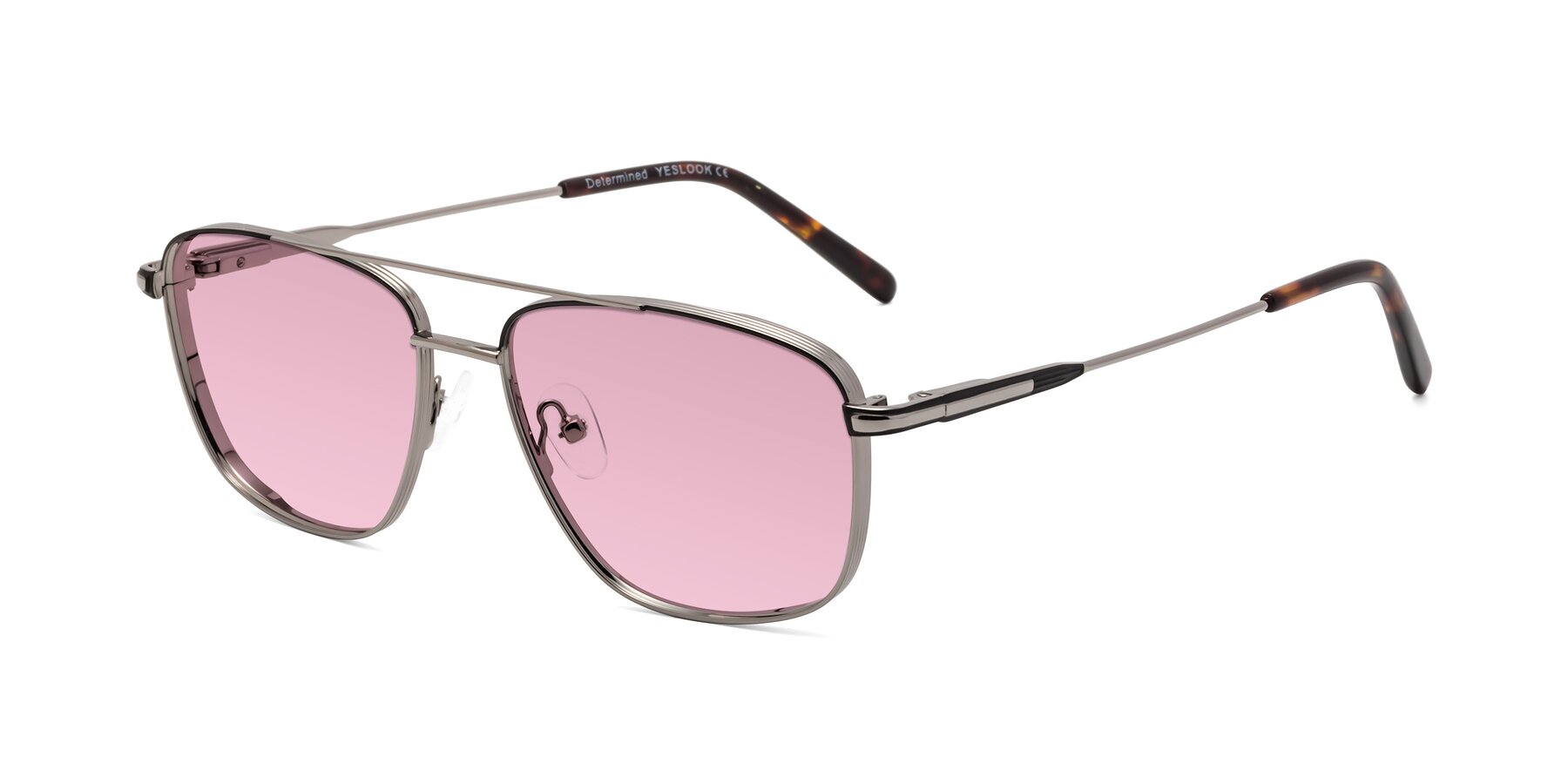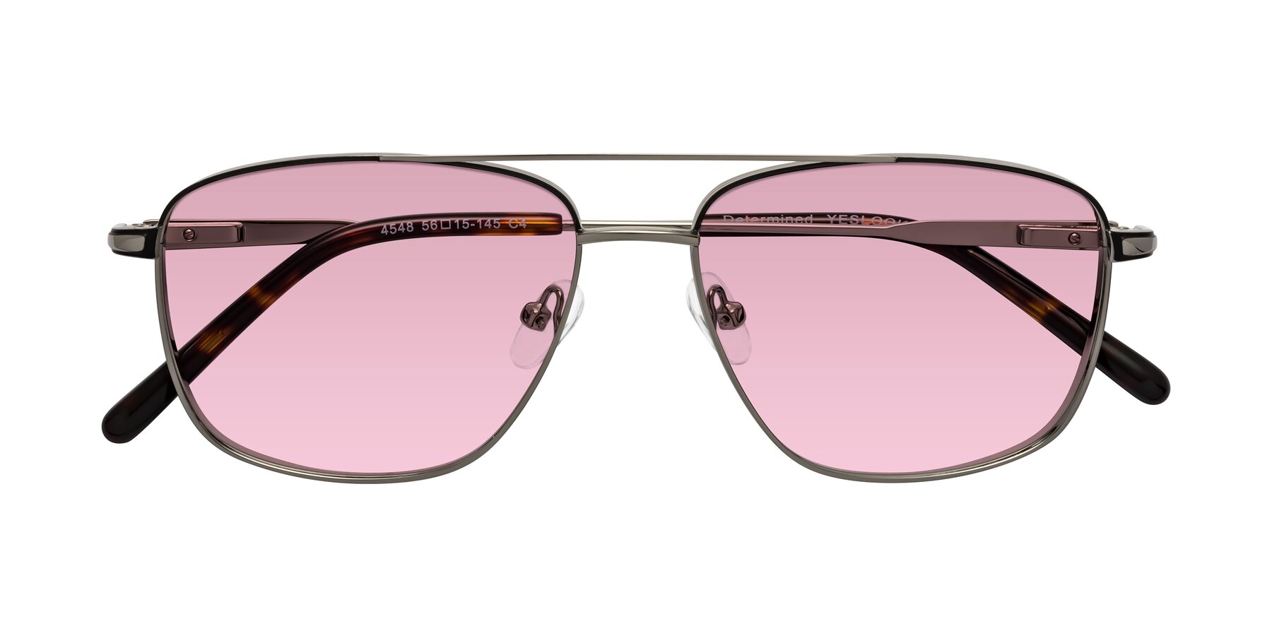 Gunmetal/Black Grandpa Double Bridge Metal Tinted Sunglasses with Light Wine Sunwear Lenses