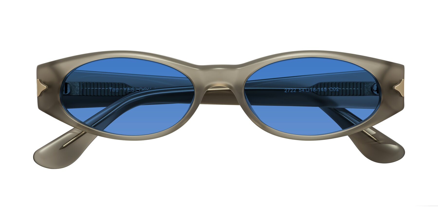 Milky Gray Retro-Vintage Geek-Chic Oval Tinted Sunglasses with Blue Sunwear Lenses