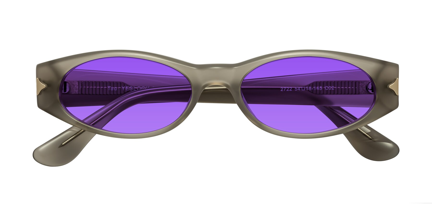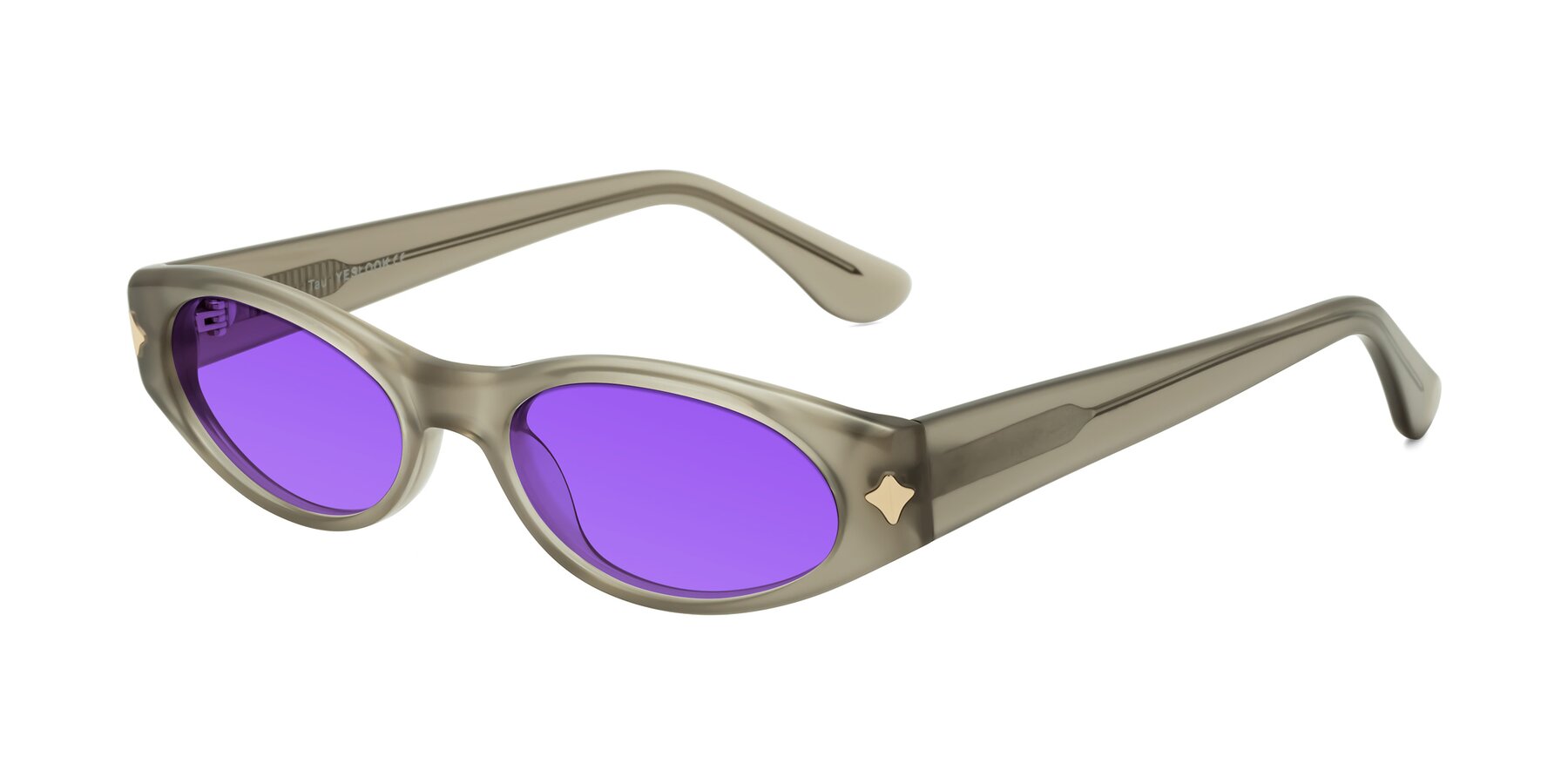 Milky Gray Retro-Vintage Geek-Chic Oval Tinted Sunglasses with Purple Sunwear Lenses