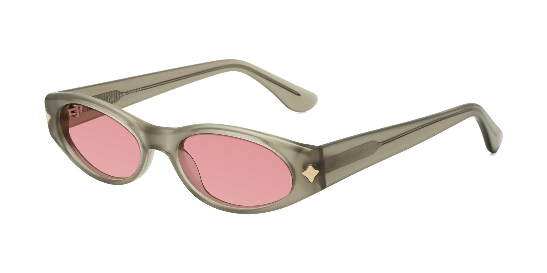 Milky Gray Retro-Vintage Geek-Chic Oval Tinted Sunglasses with Medium Garnet Sunwear Lenses