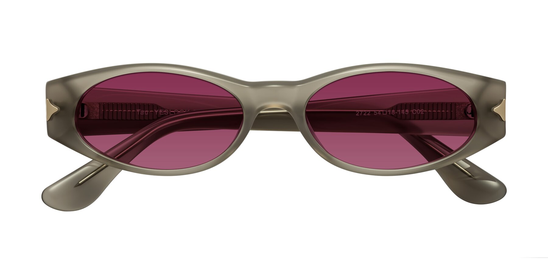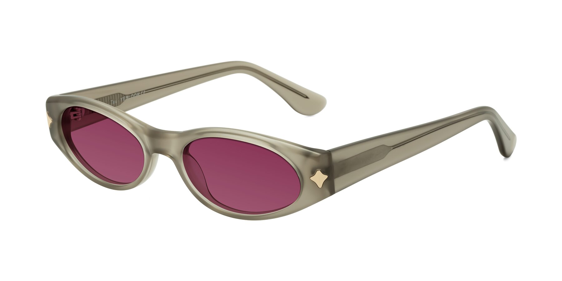 Milky Gray Retro-Vintage Geek-Chic Oval Tinted Sunglasses with Wine Sunwear Lenses