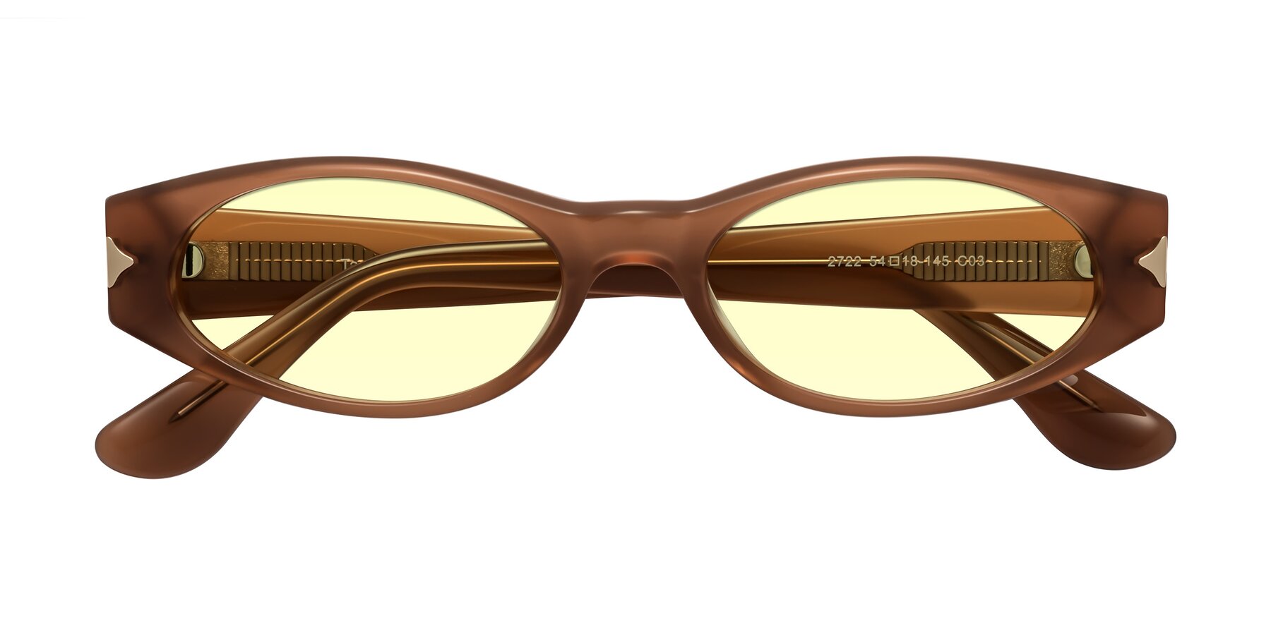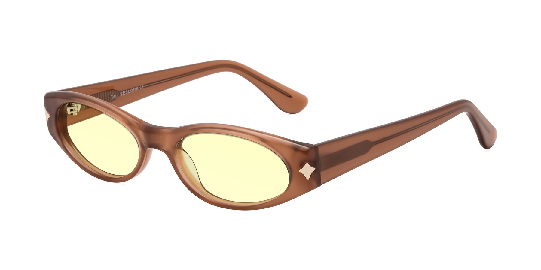 Milky Brown Retro-Vintage Geek-Chic Oval Tinted Sunglasses with Light Yellow Sunwear Lenses