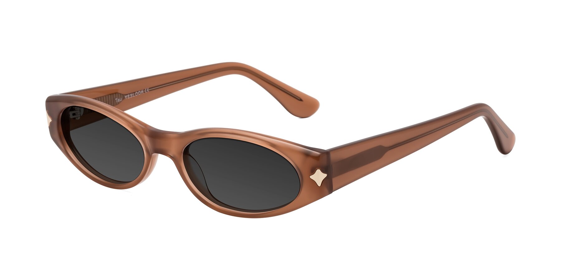 Milky Brown Retro-Vintage Geek-Chic Oval Tinted Sunglasses with Gray Sunwear Lenses