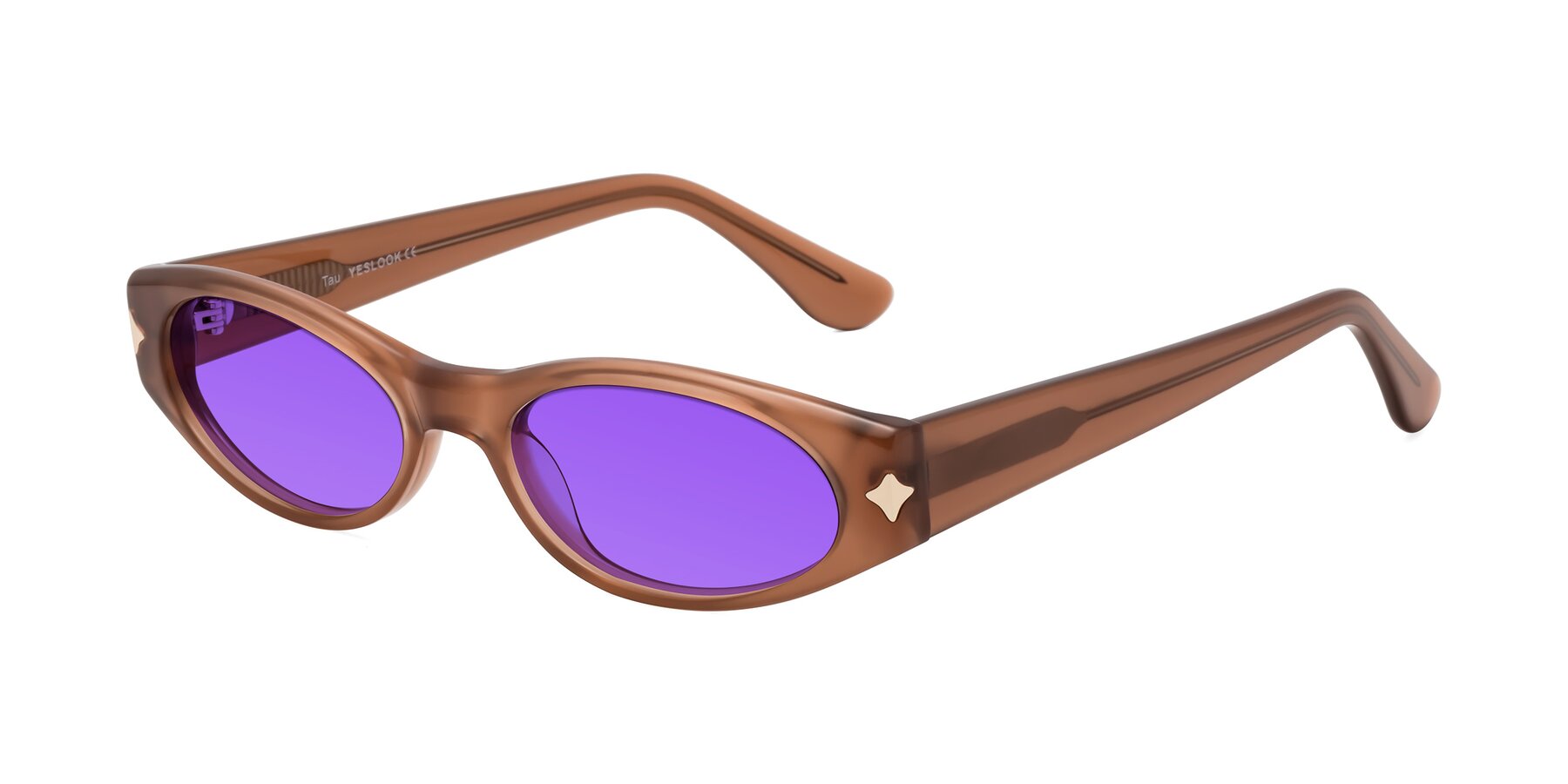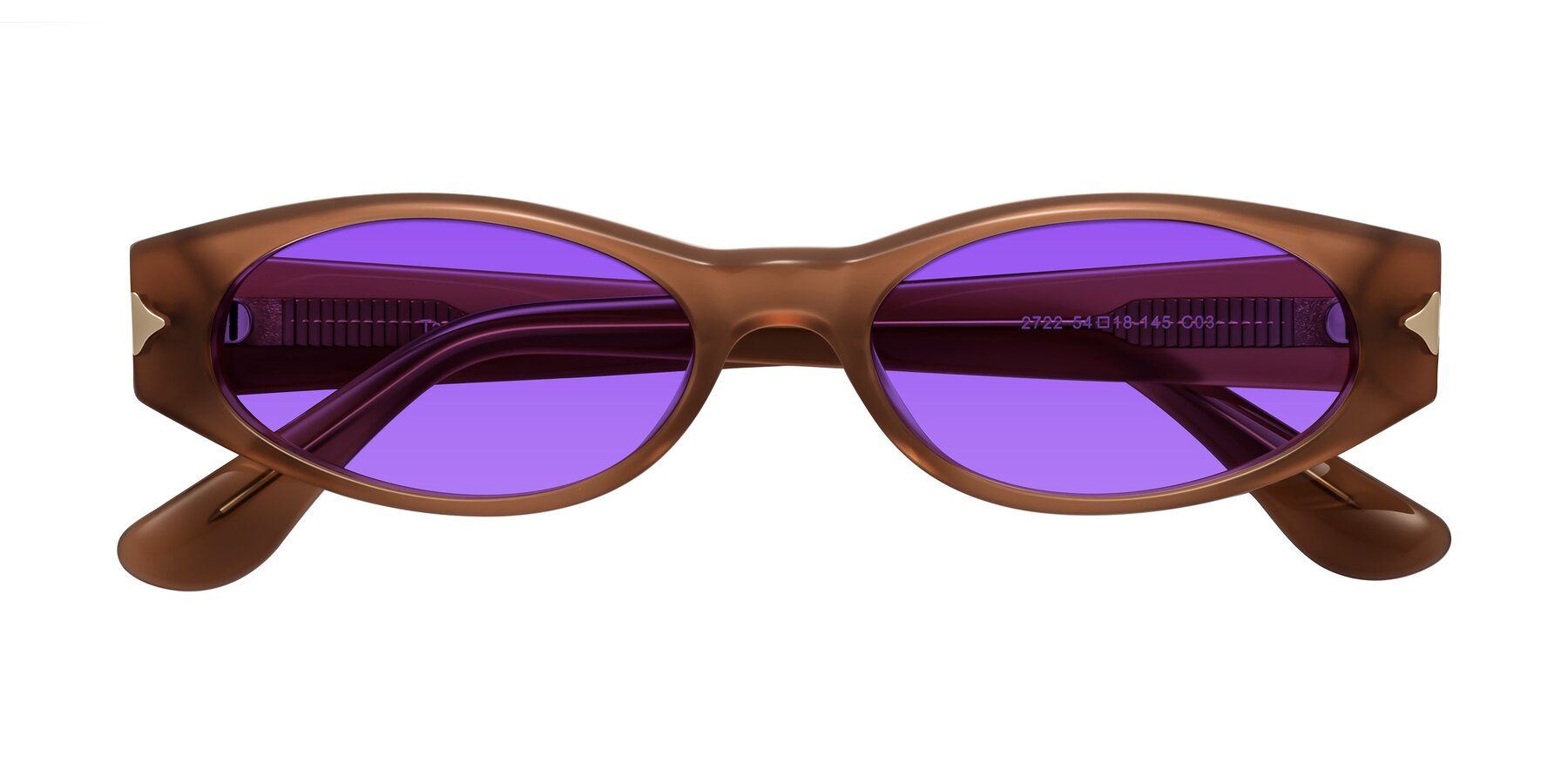 Milky Brown Retro-Vintage Geek-Chic Oval Tinted Sunglasses with Purple Sunwear Lenses