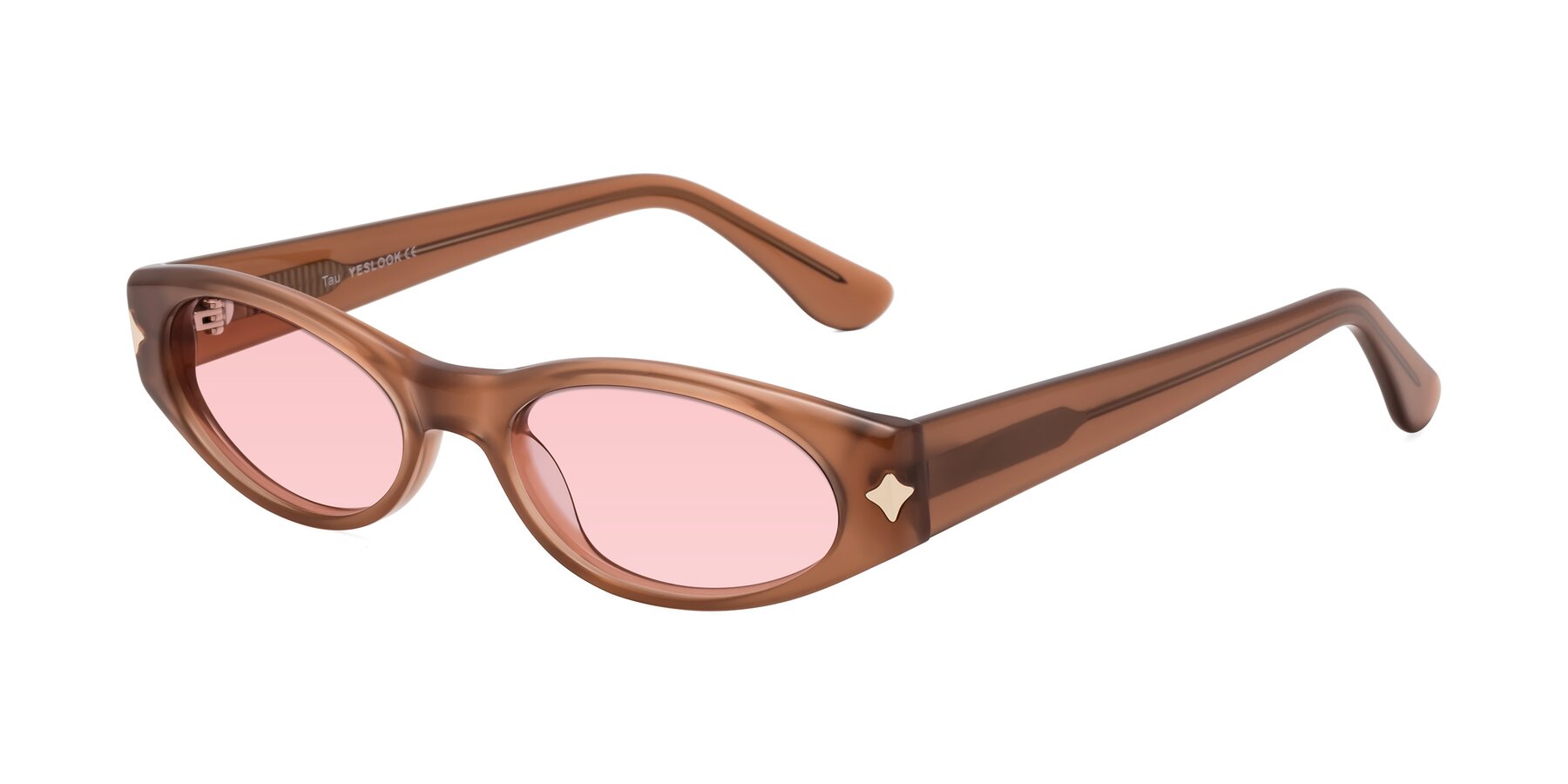 Milky Brown Retro-Vintage Geek-Chic Oval Tinted Sunglasses with Light Garnet Sunwear Lenses