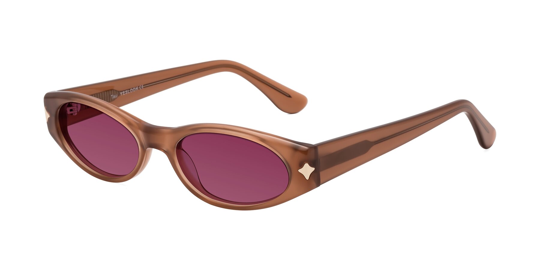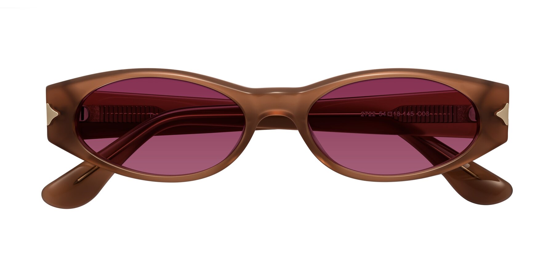 Milky Brown Retro-Vintage Geek-Chic Oval Tinted Sunglasses with Wine Sunwear Lenses