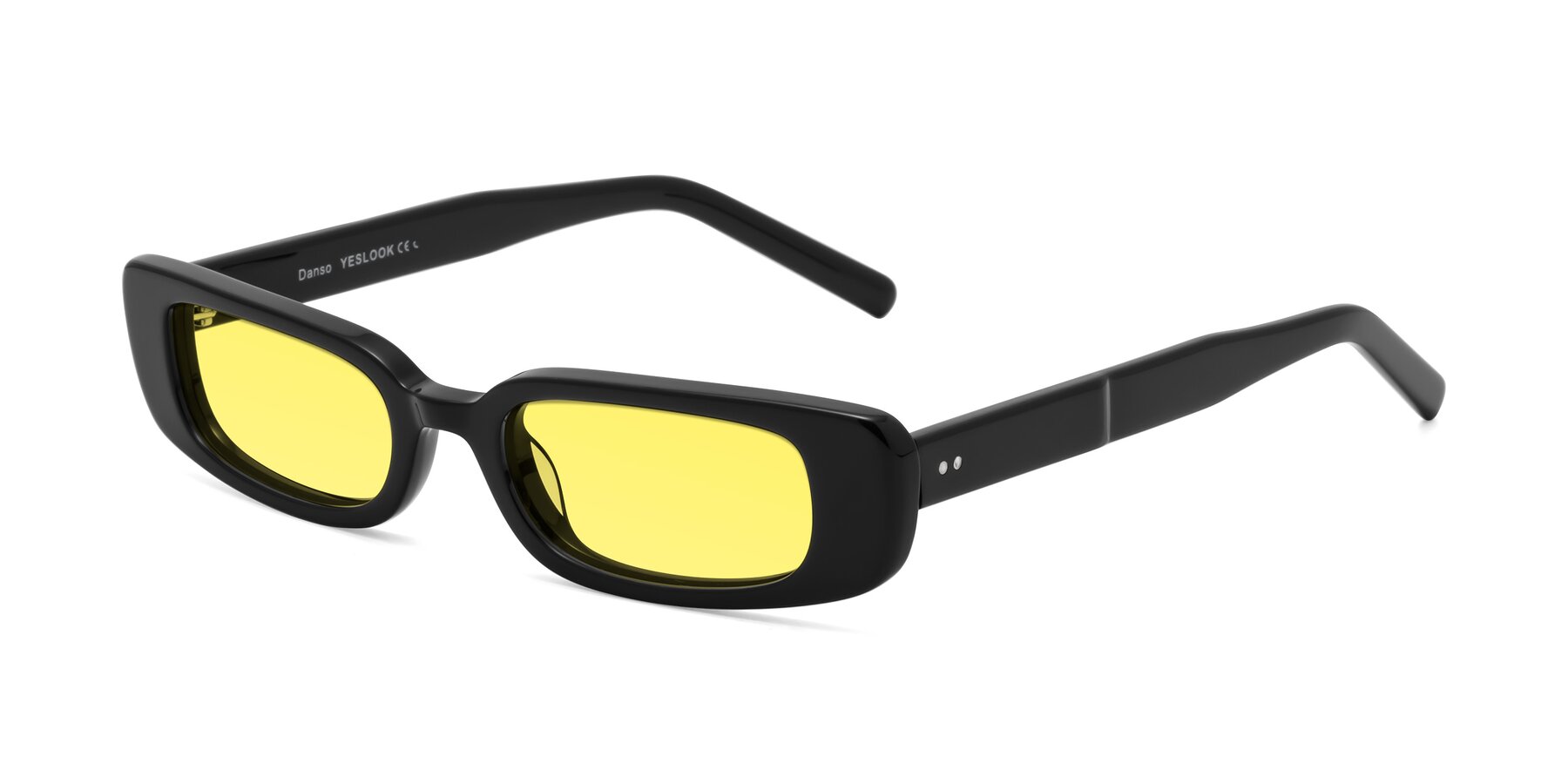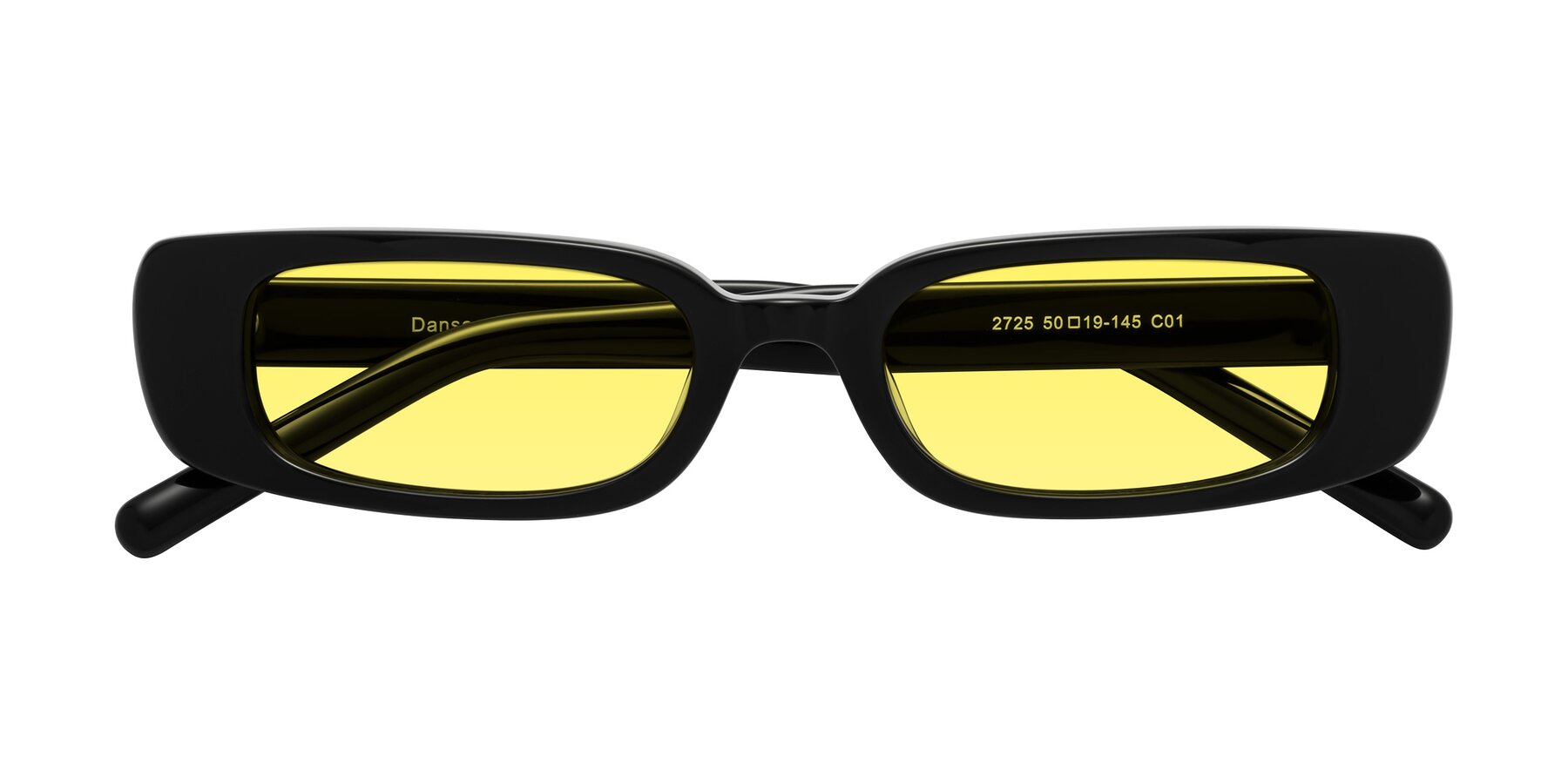 Black Geek-Chic Acetate Rectangle Tinted Sunglasses with Medium Yellow Sunwear Lenses