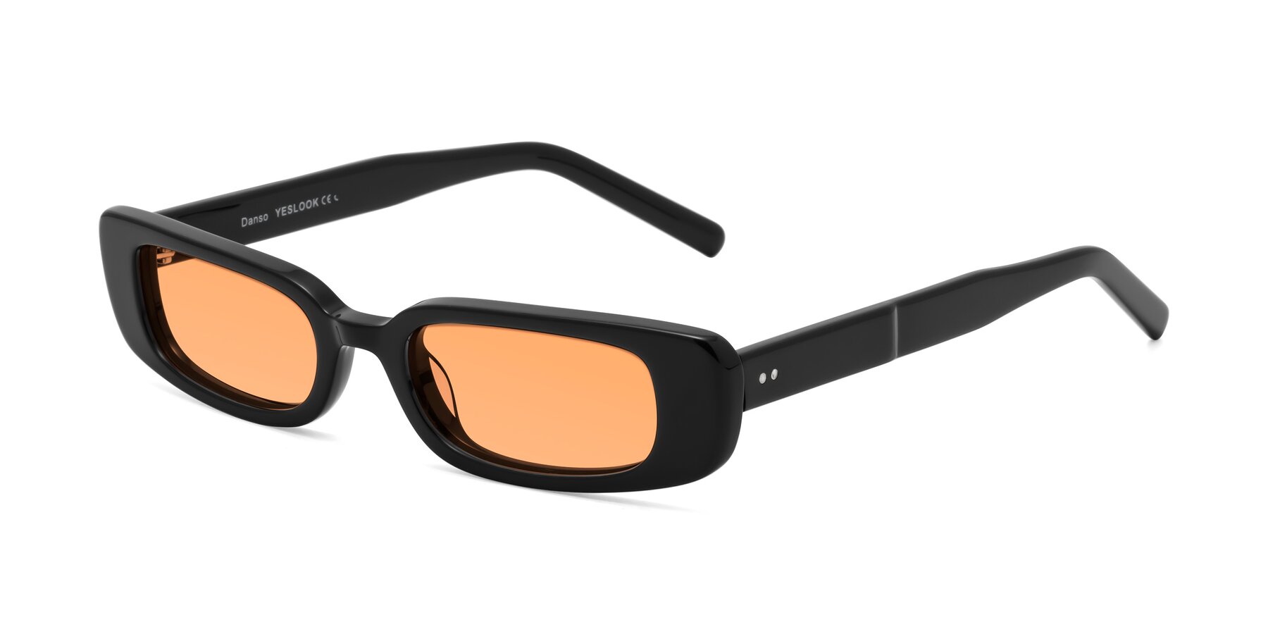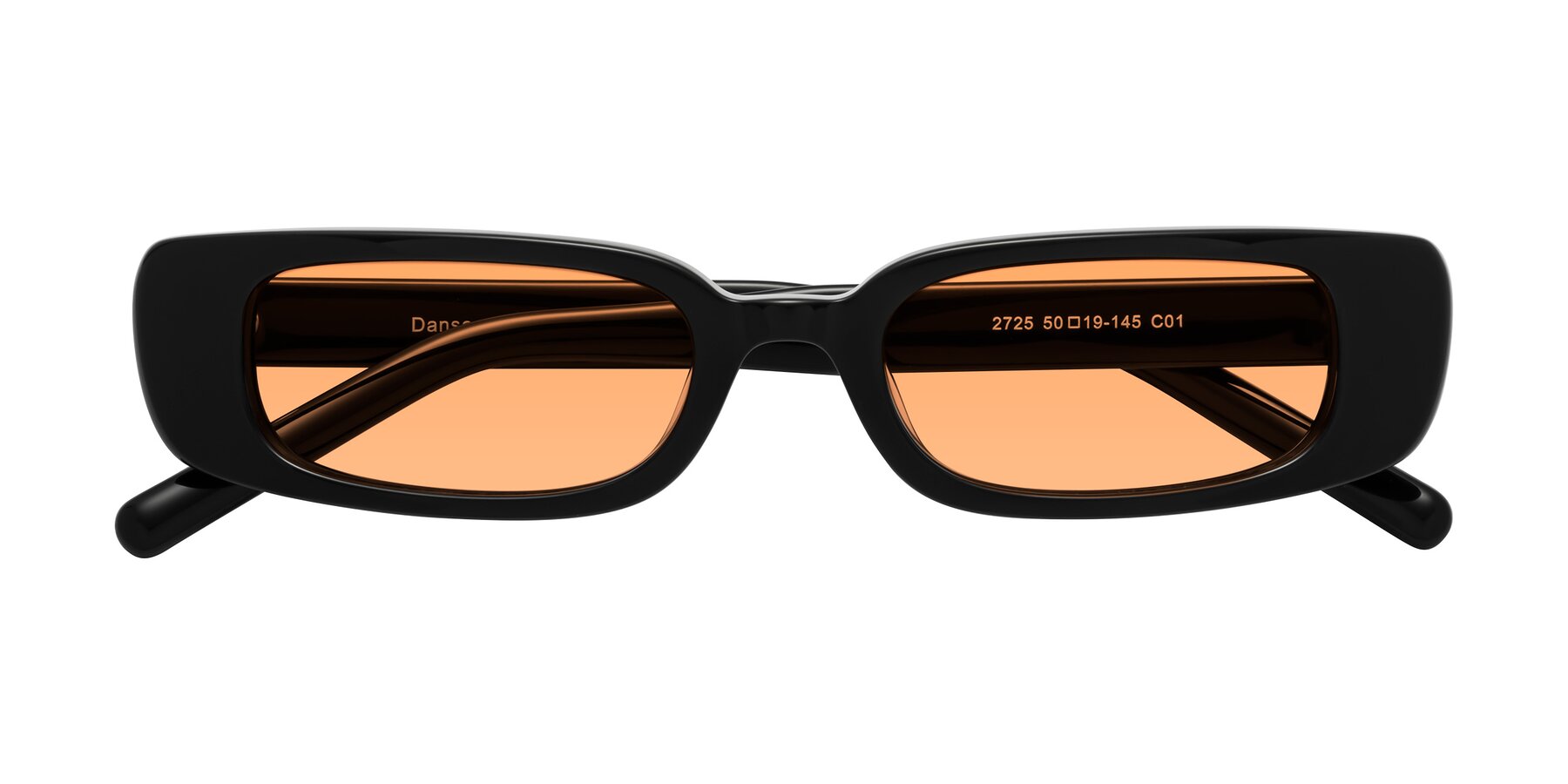 Black Geek-Chic Acetate Rectangle Tinted Sunglasses with Medium Orange Sunwear Lenses