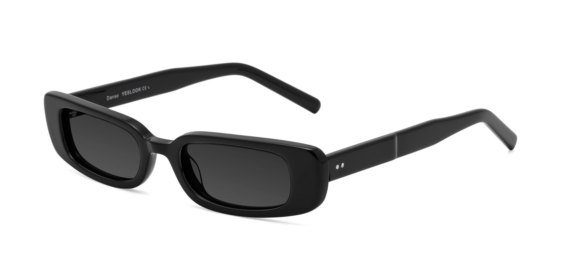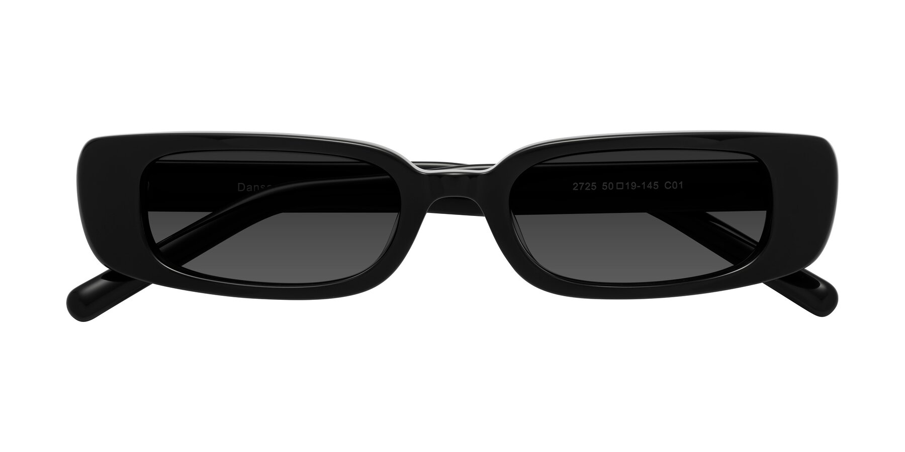 Black Geek-Chic Acetate Rectangle Tinted Sunglasses with Gray Sunwear Lenses