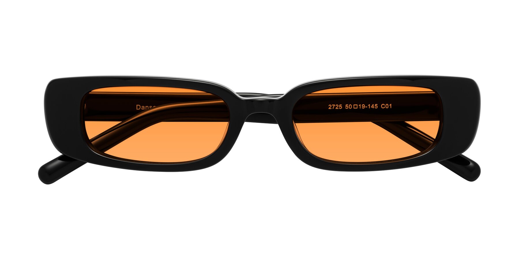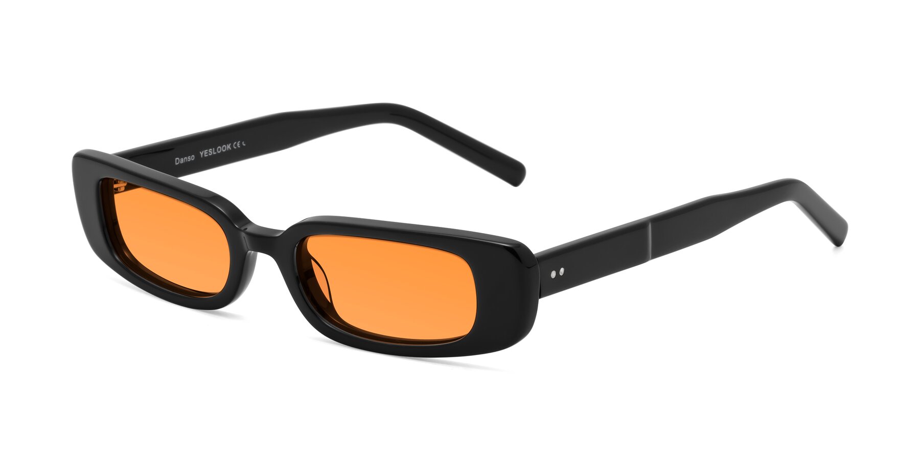 Black Geek-Chic Acetate Rectangle Tinted Sunglasses with Orange Sunwear Lenses