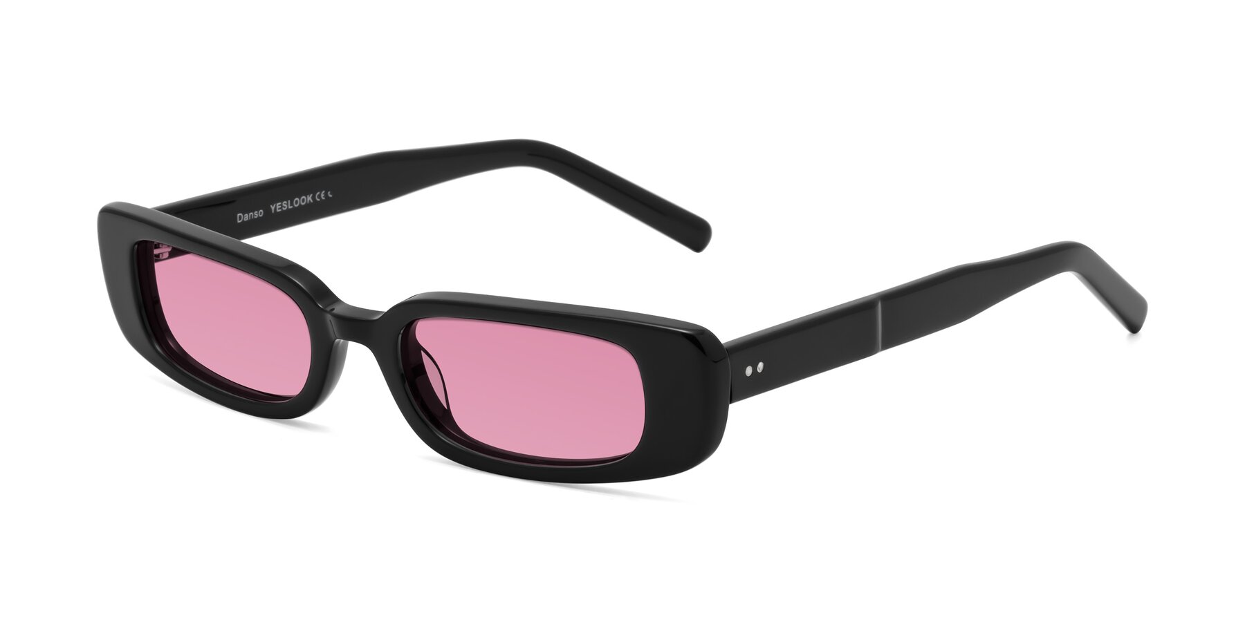 Black Geek-Chic Acetate Rectangle Tinted Sunglasses with Medium Wine Sunwear Lenses