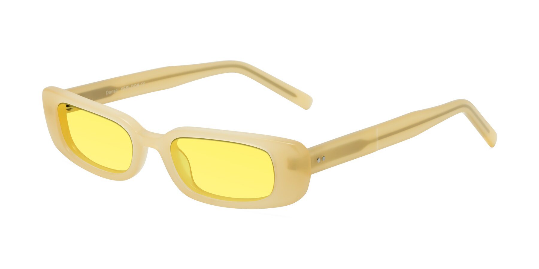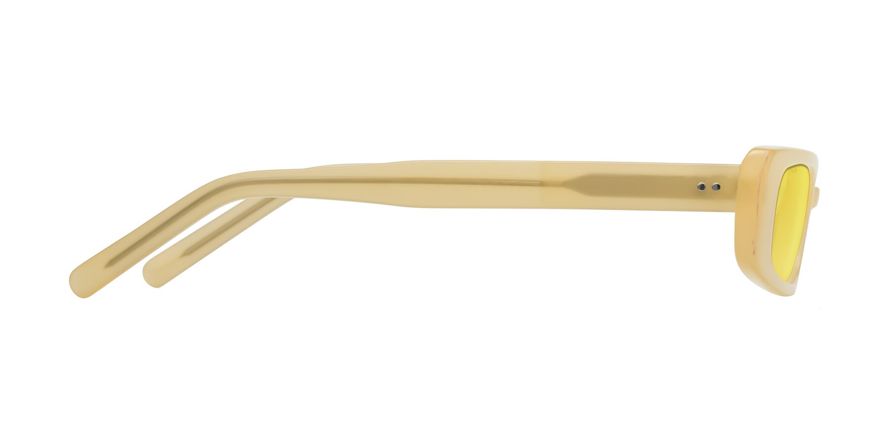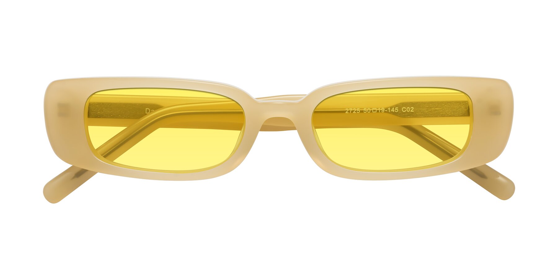 Pastel Beige Geek-Chic Acetate Rectangle Tinted Sunglasses with Medium Yellow Sunwear Lenses