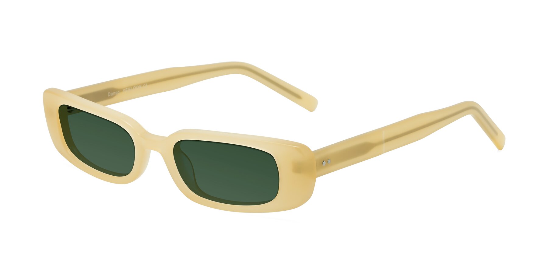 Pastel Beige Geek-Chic Acetate Rectangle Tinted Sunglasses with Green Sunwear Lenses