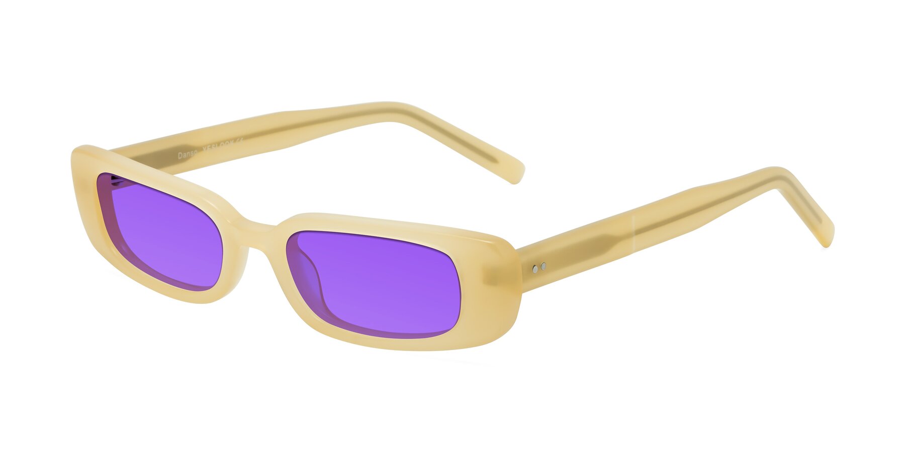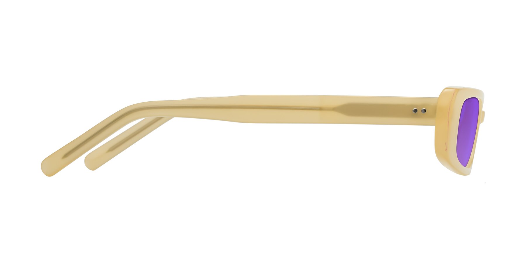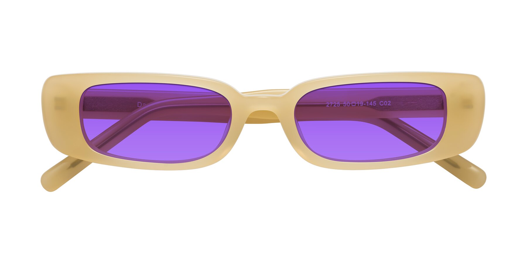 Pastel Beige Geek-Chic Acetate Rectangle Tinted Sunglasses with Purple Sunwear Lenses