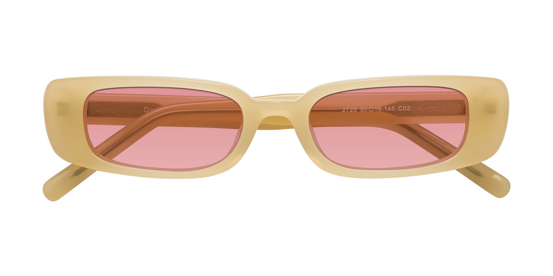 Pastel Beige Geek-Chic Acetate Rectangle Tinted Sunglasses with Medium Garnet Sunwear Lenses