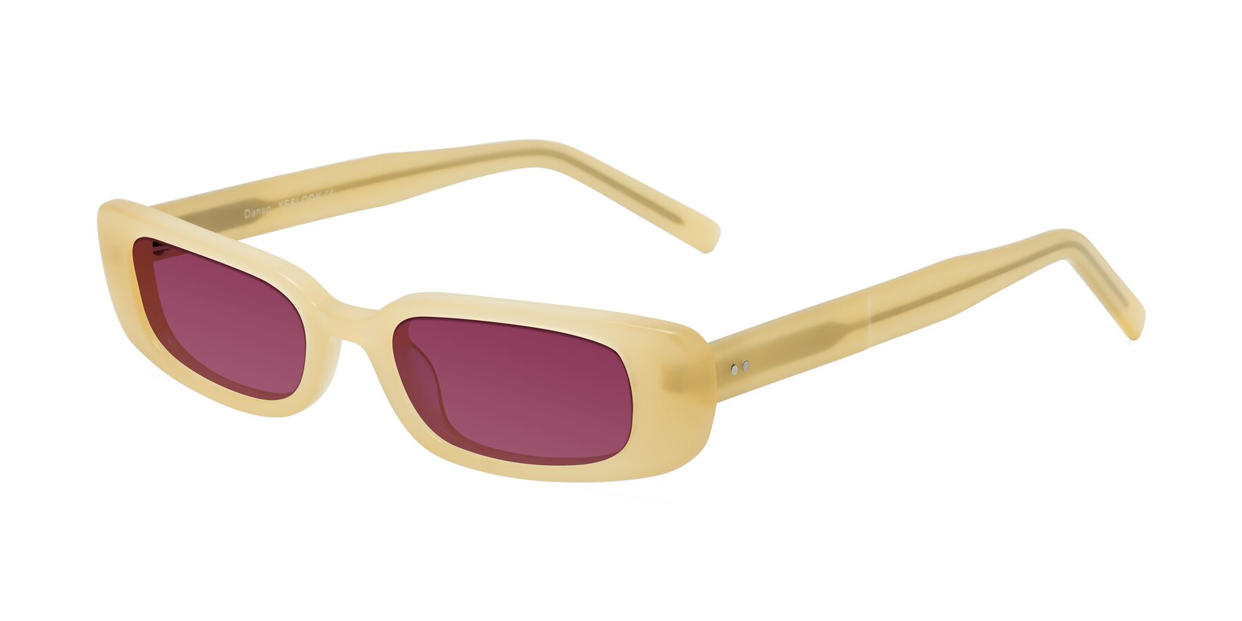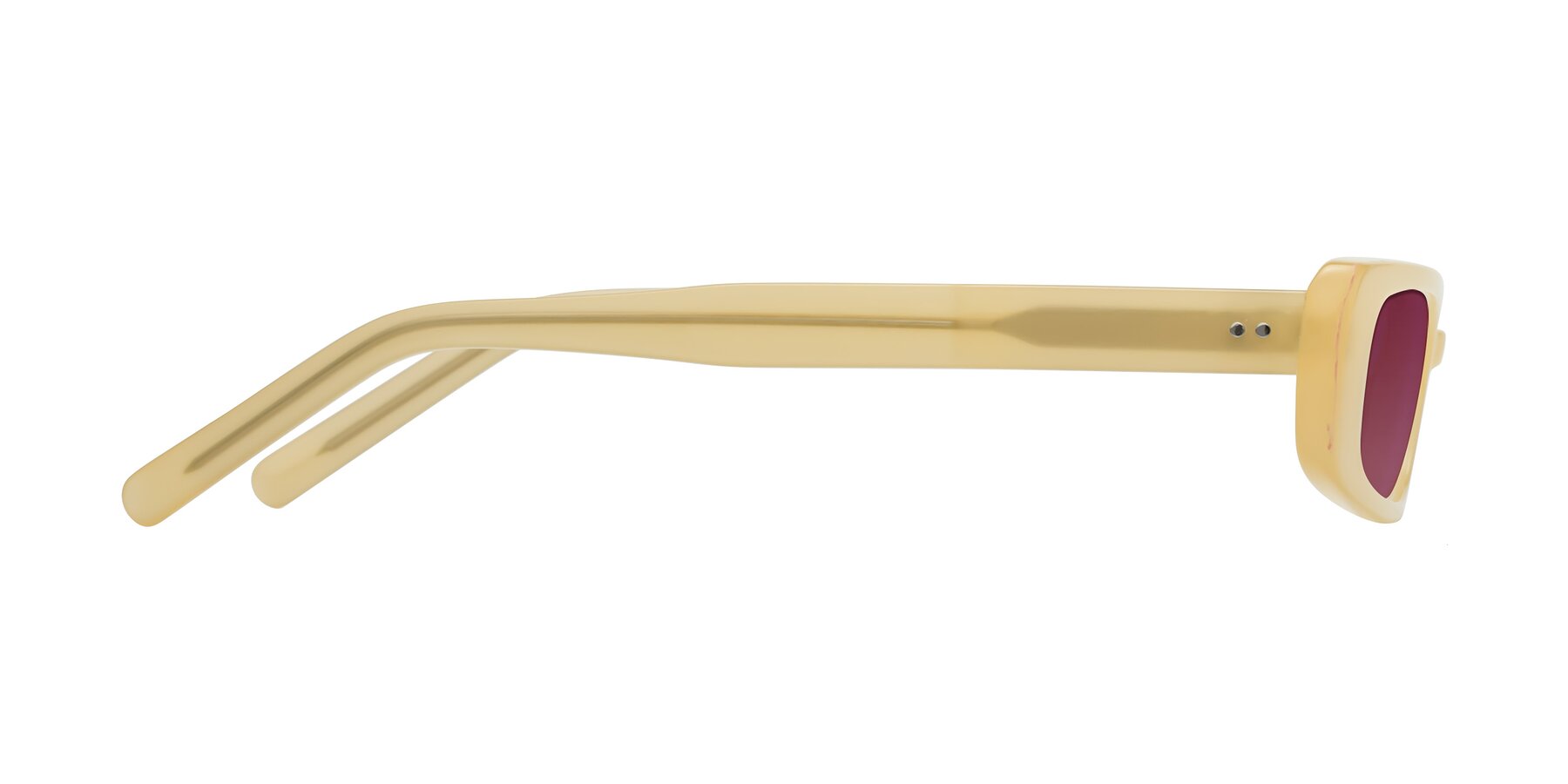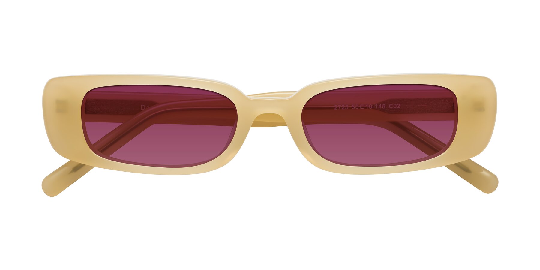 Pastel Beige Geek-Chic Acetate Rectangle Tinted Sunglasses with Wine Sunwear Lenses