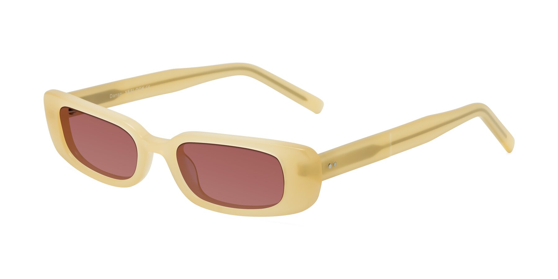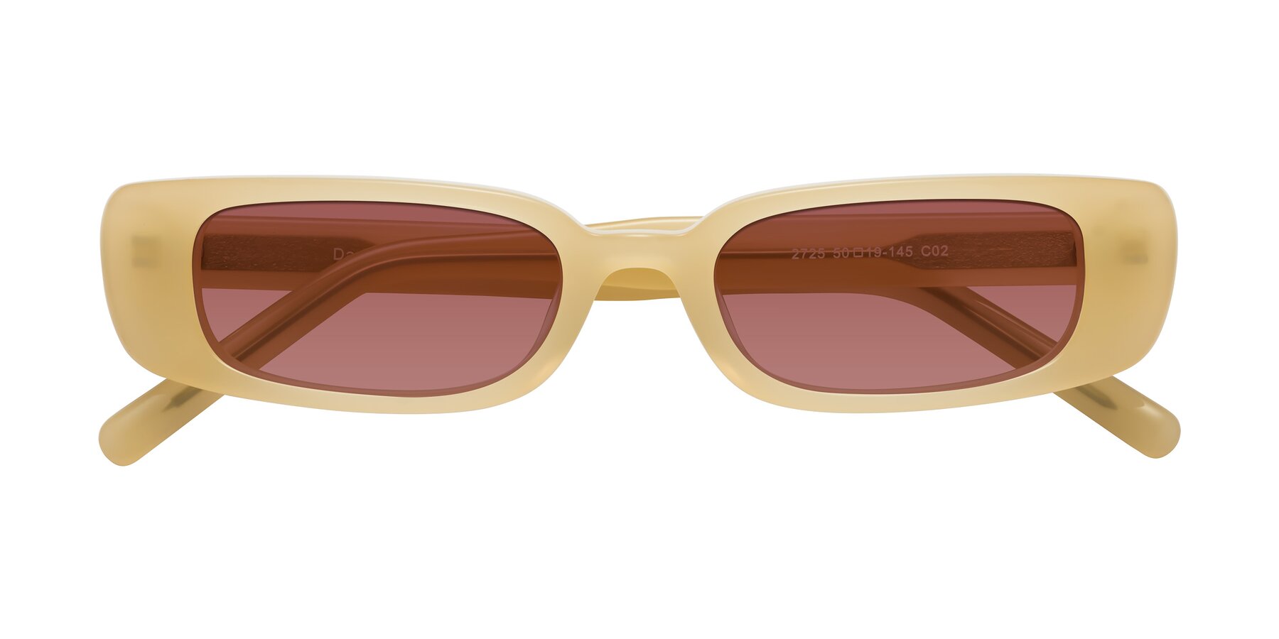 Pastel Beige Geek-Chic Acetate Rectangle Tinted Sunglasses with Garnet Sunwear Lenses
