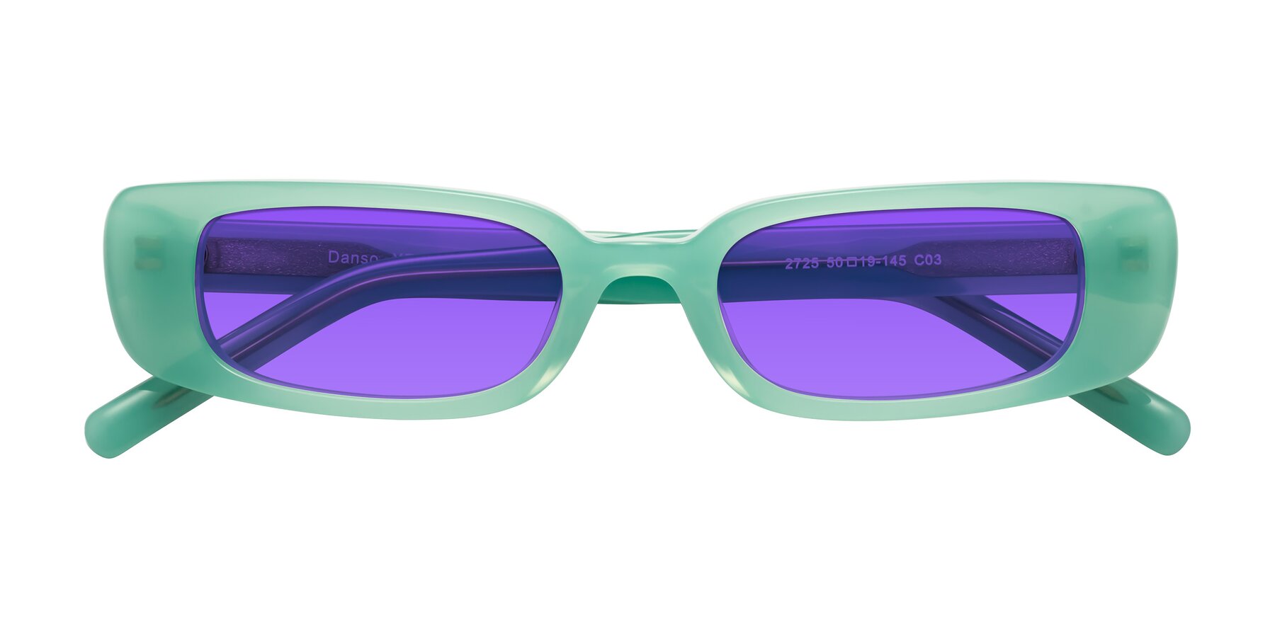 Pastel Mint Geek-Chic Acetate Rectangle Tinted Sunglasses with Purple Sunwear Lenses