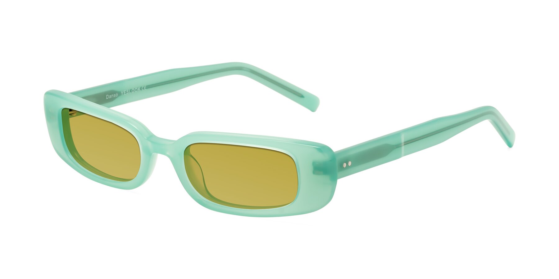 Pastel Mint Geek-Chic Acetate Rectangle Tinted Sunglasses with Champagne Sunwear Lenses