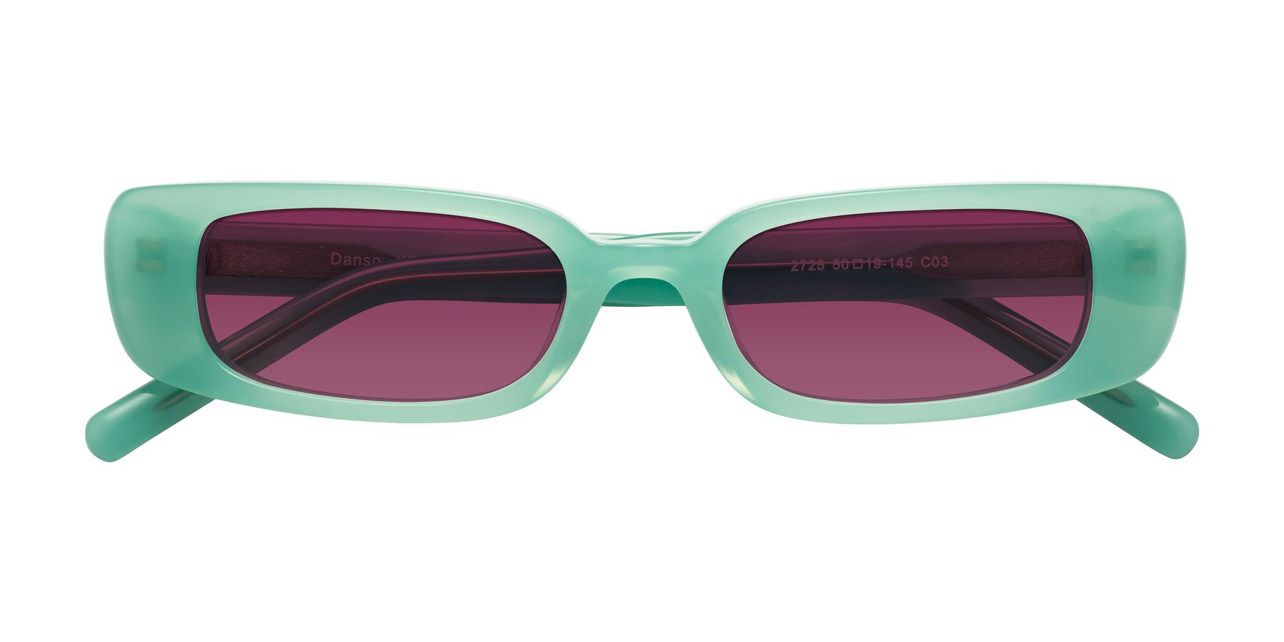 Pastel Mint Geek-Chic Acetate Rectangle Tinted Sunglasses with Wine Sunwear Lenses