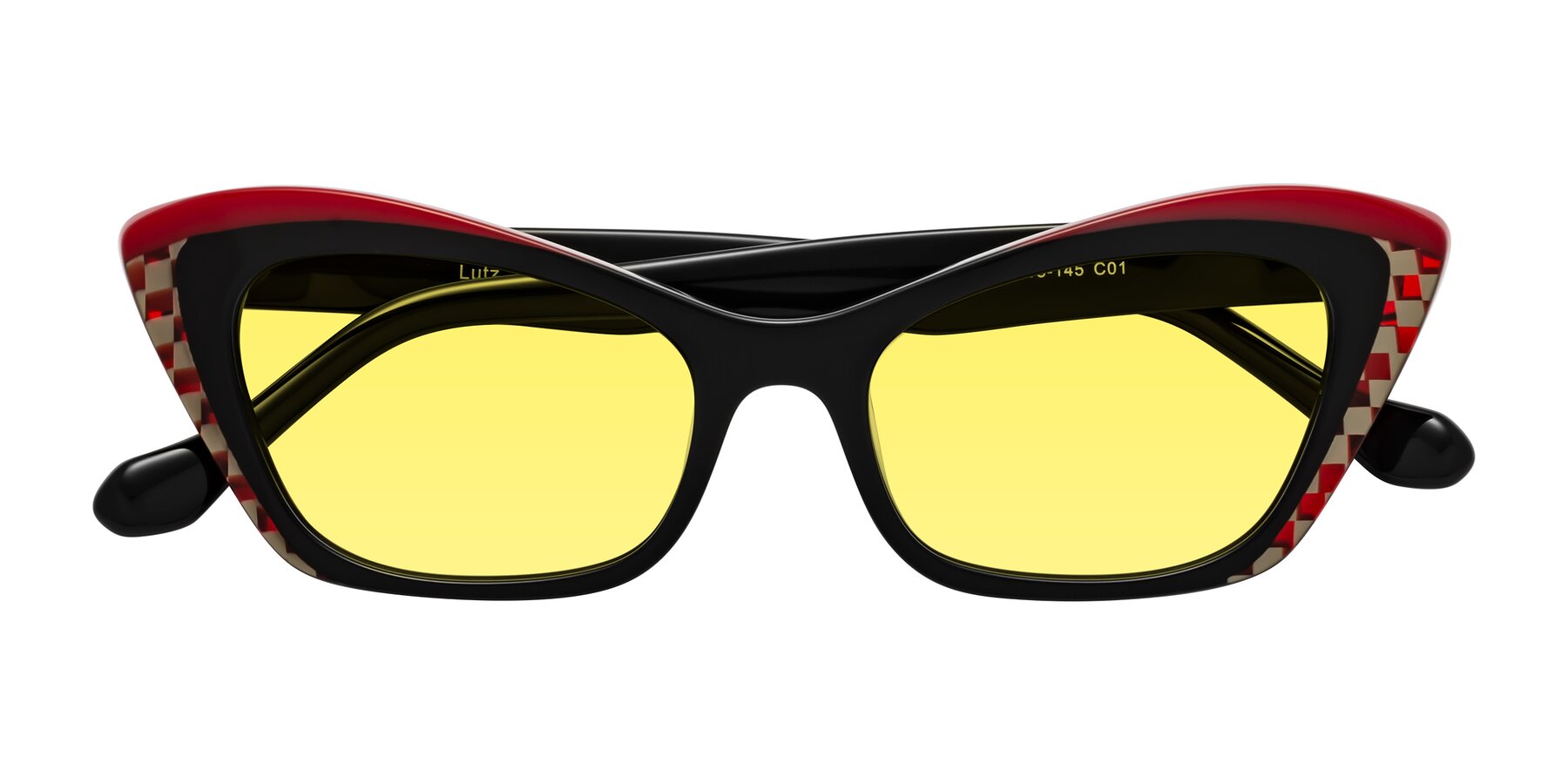 Black/Red Hipster Acetate Butterfly Tinted Sunglasses with Medium Yellow Sunwear Lenses