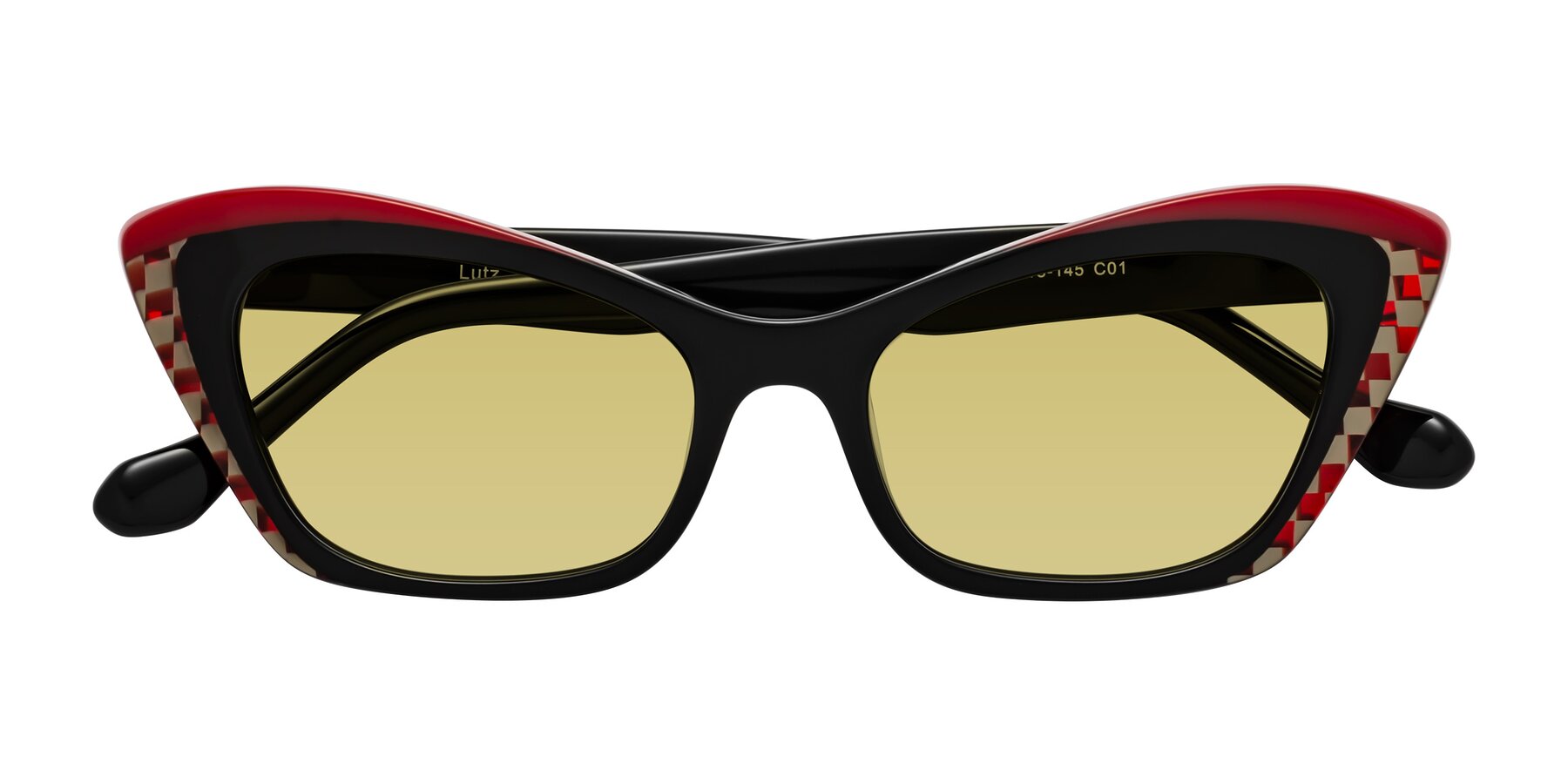 Black/Red Hipster Acetate Butterfly Tinted Sunglasses with Medium Champagne Sunwear Lenses
