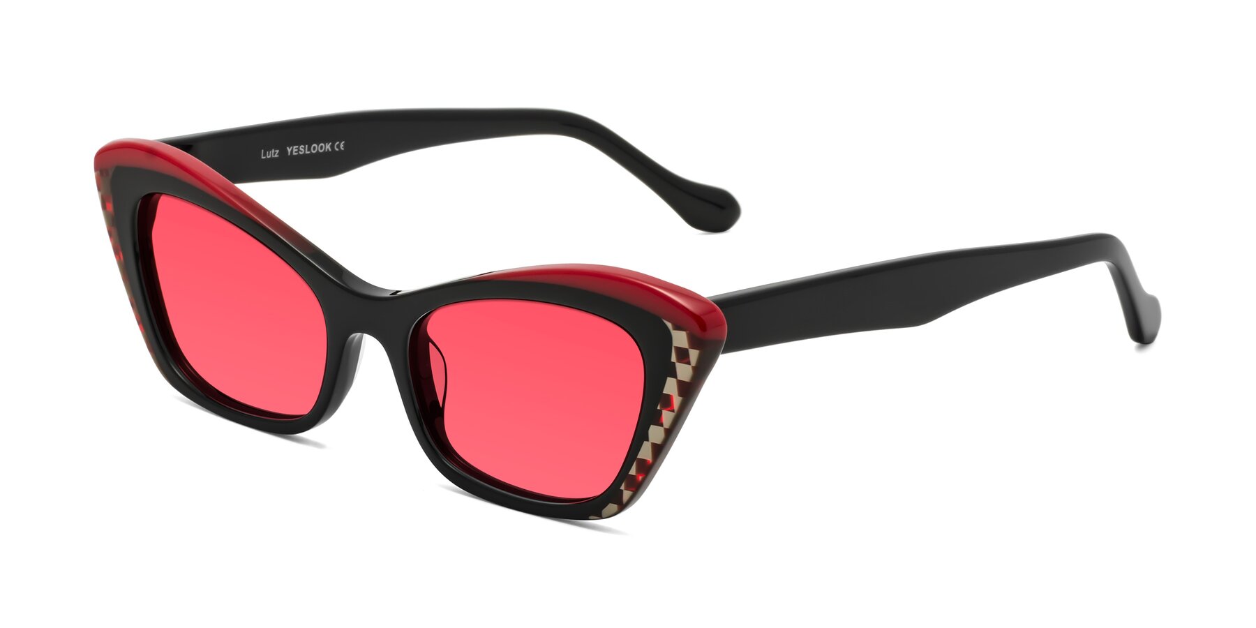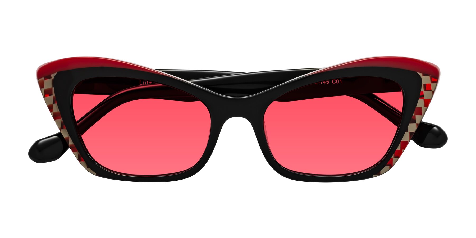 Black/Red Hipster Acetate Butterfly Tinted Sunglasses with Red Sunwear Lenses