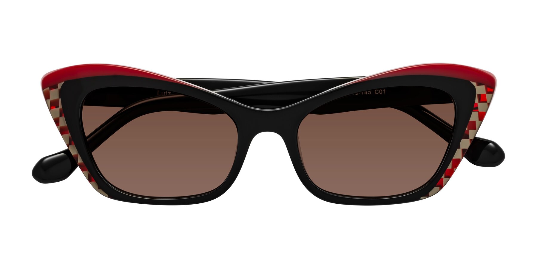 Black/Red Hipster Acetate Butterfly Tinted Sunglasses with Brown Sunwear Lenses