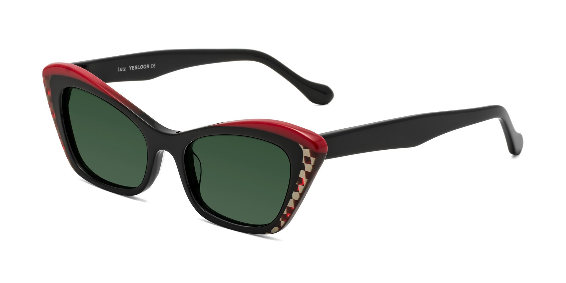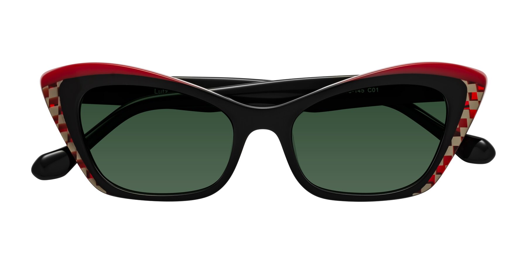 Black/Red Hipster Acetate Butterfly Tinted Sunglasses with Green Sunwear Lenses