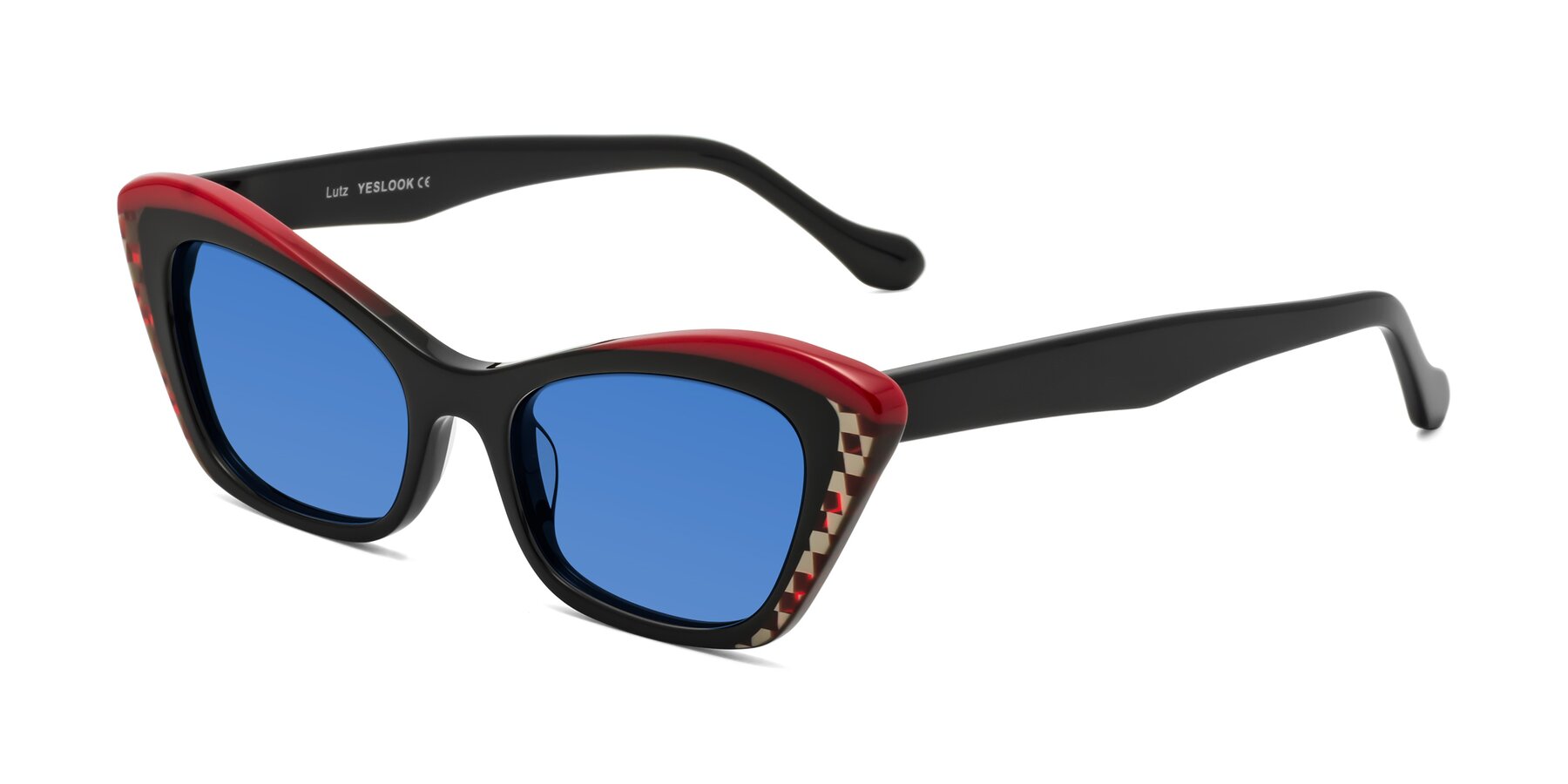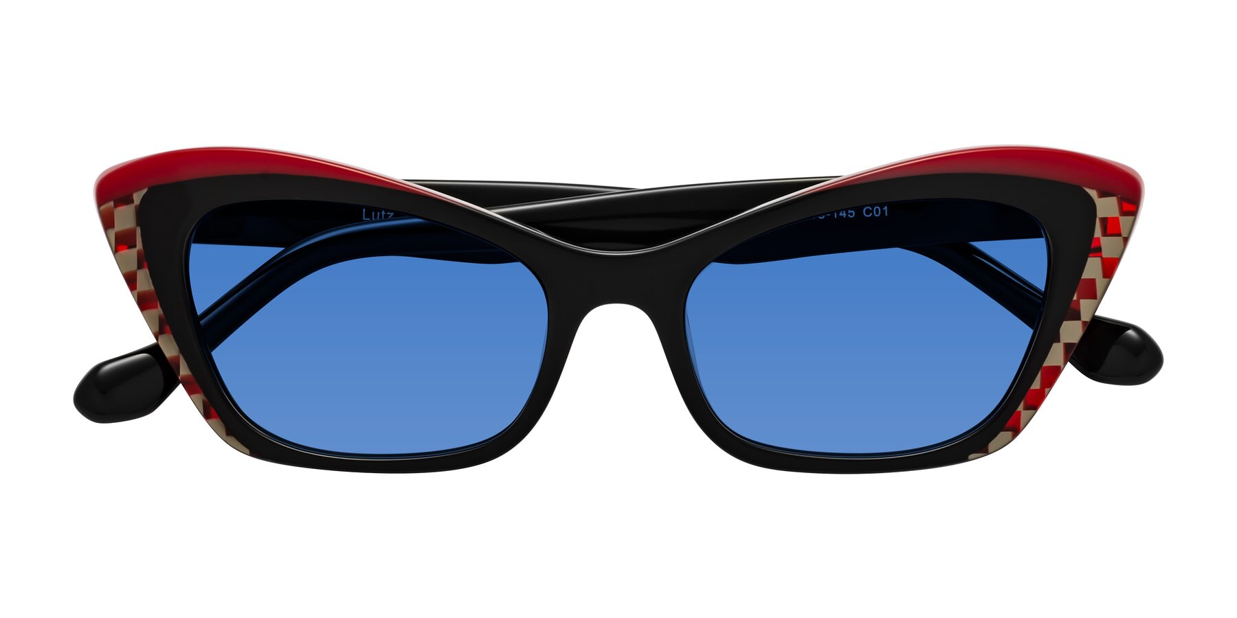 Black/Red Hipster Acetate Butterfly Tinted Sunglasses with Blue Sunwear Lenses