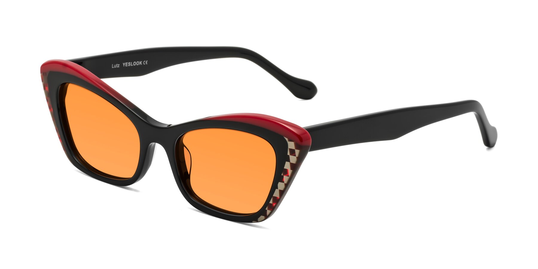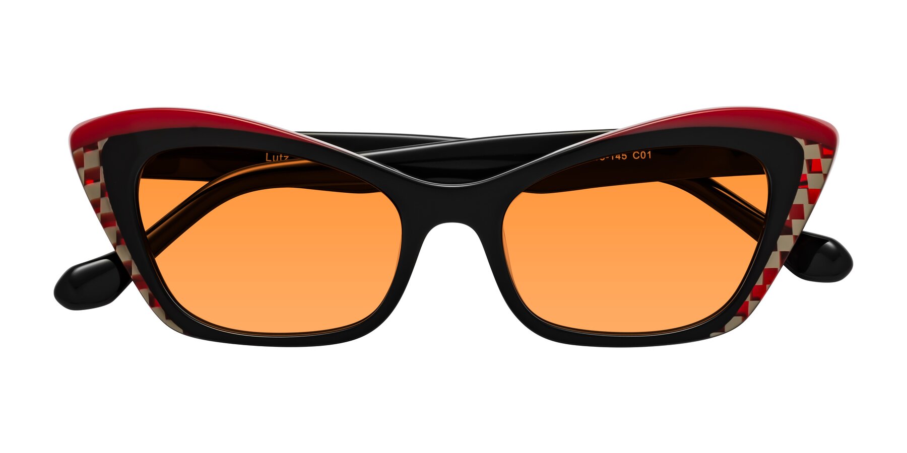 Black/Red Hipster Acetate Butterfly Tinted Sunglasses with Orange Sunwear Lenses