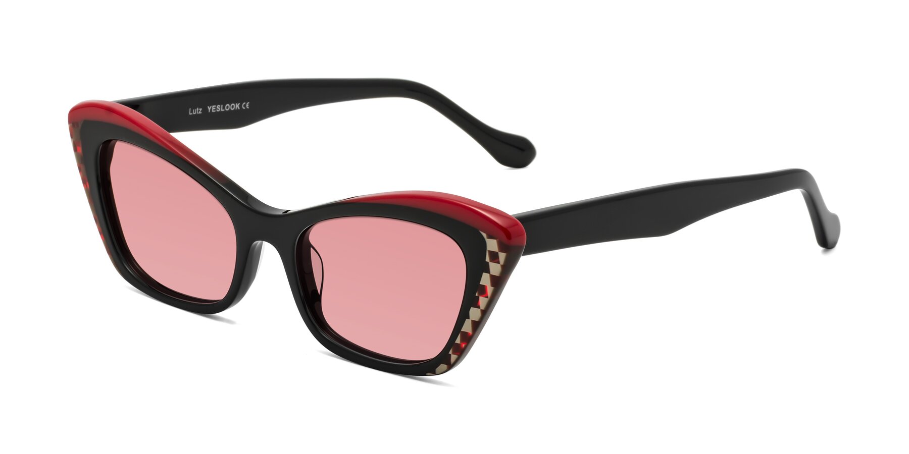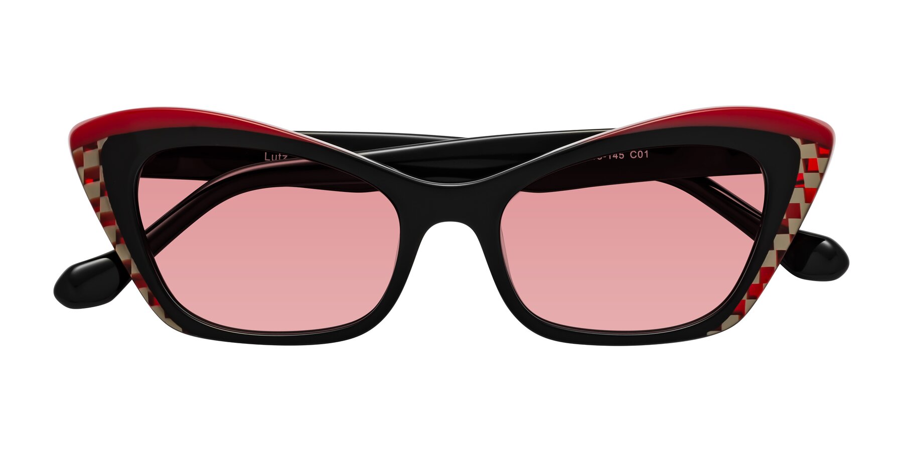 Black/Red Hipster Acetate Butterfly Tinted Sunglasses with Medium Garnet Sunwear Lenses