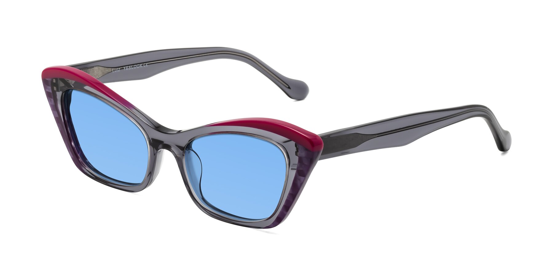Gray/Fandango Hipster Acetate Butterfly Tinted Sunglasses with Medium Blue Sunwear Lenses