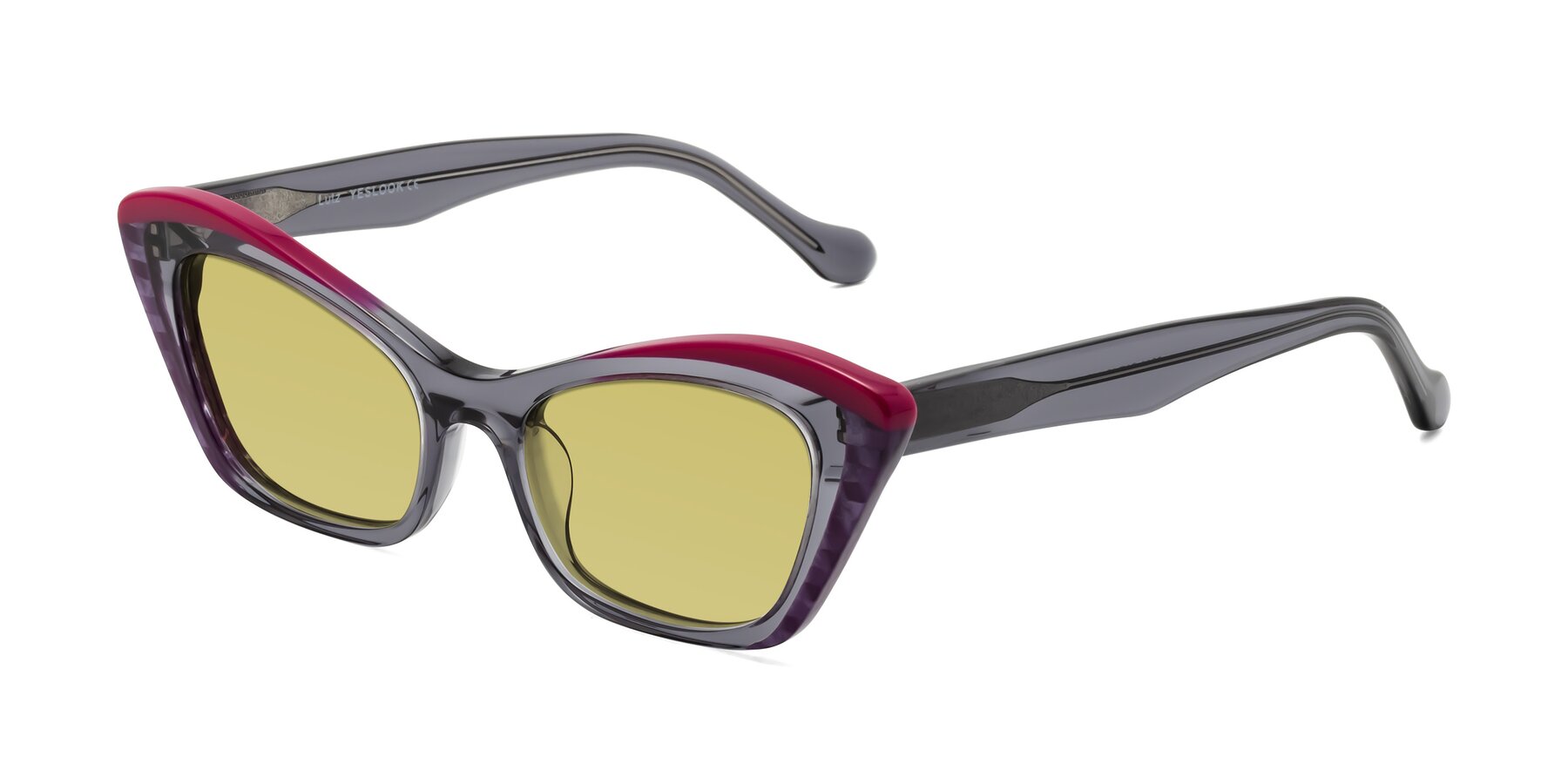 Gray/Fandango Hipster Acetate Butterfly Tinted Sunglasses with Medium Champagne Sunwear Lenses