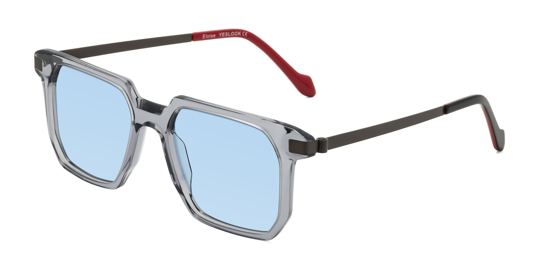 Transparent Gray Mixed Lightweight Square Tinted Sunglasses with Light Blue Sunwear Lenses