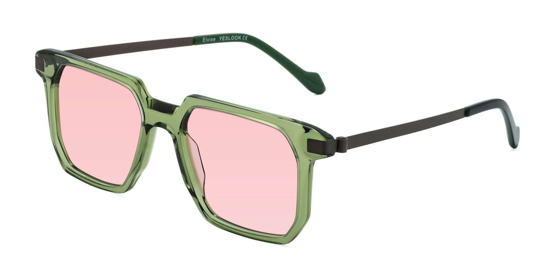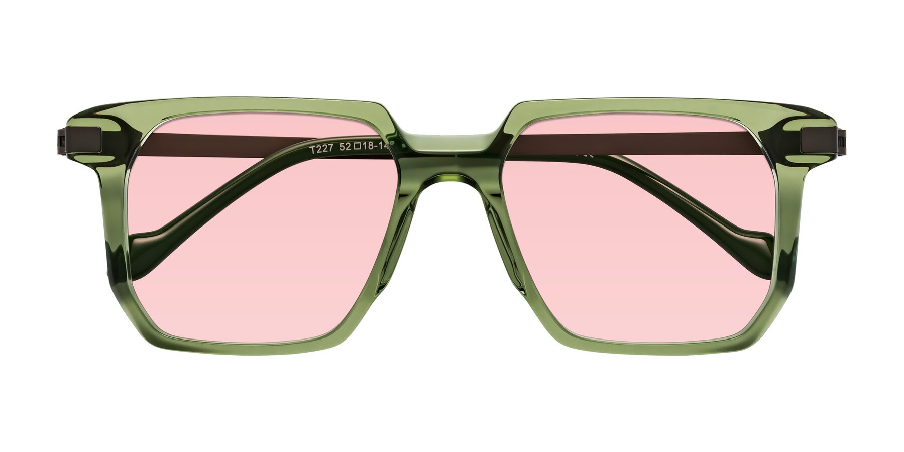 Transparent Green Mixed Lightweight Square Tinted Sunglasses with Light Garnet Sunwear Lenses