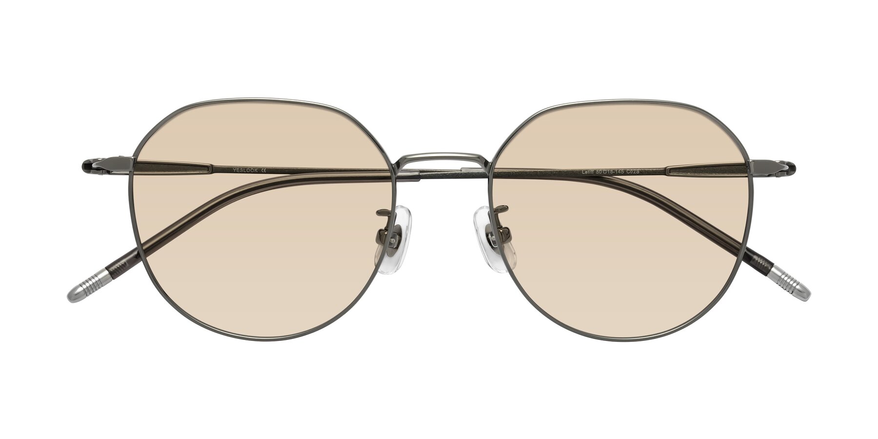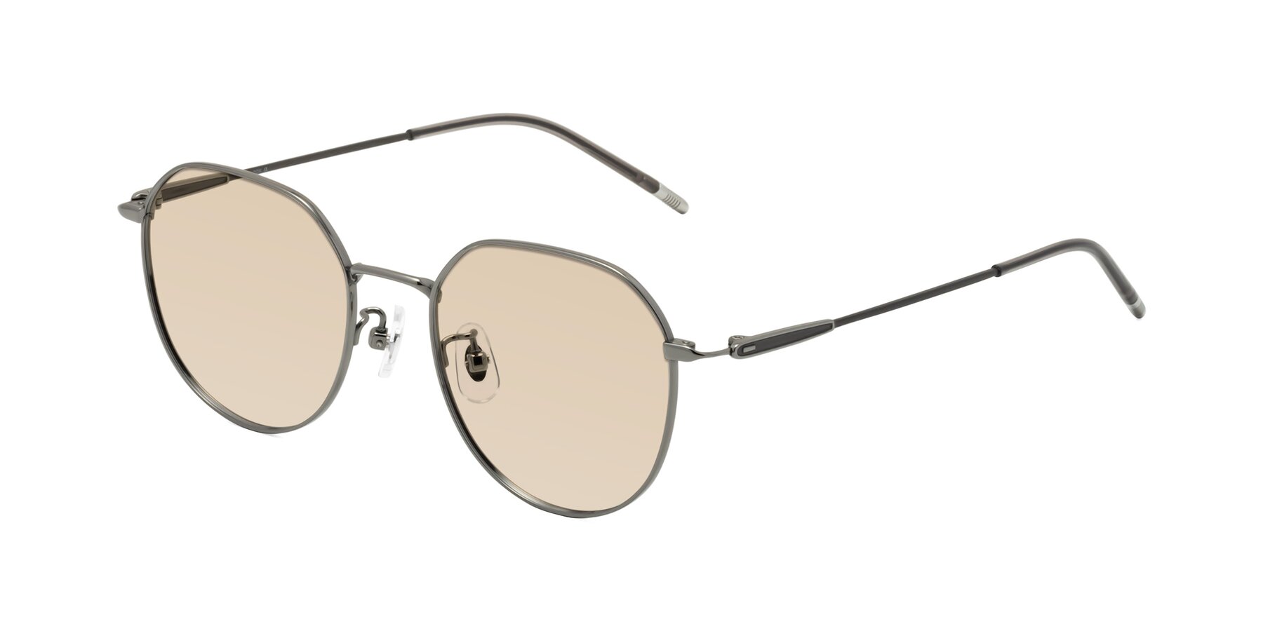 Gunmetal Titanium Round Geometric Tinted Sunglasses with Light Brown Sunwear Lenses