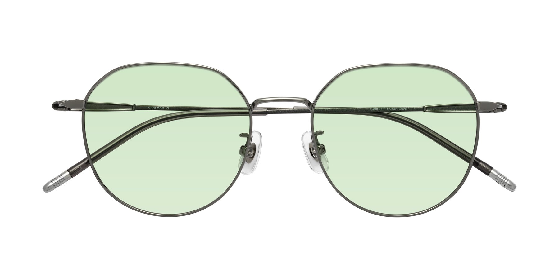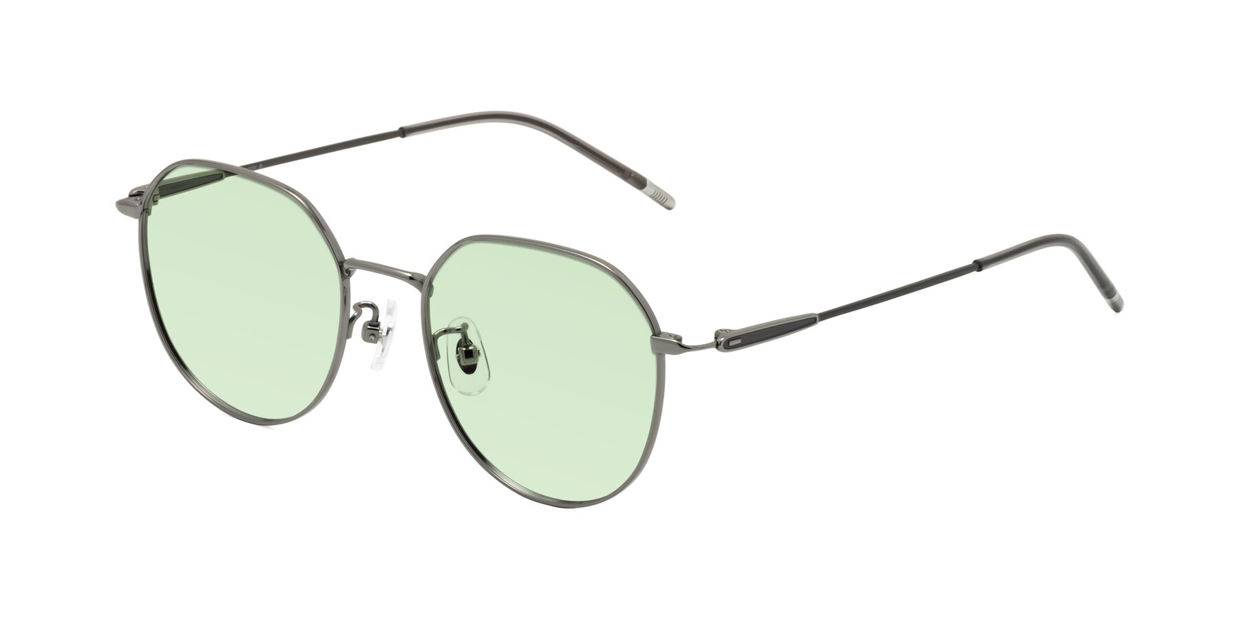 Gunmetal Titanium Round Geometric Tinted Sunglasses with Light Green Sunwear Lenses