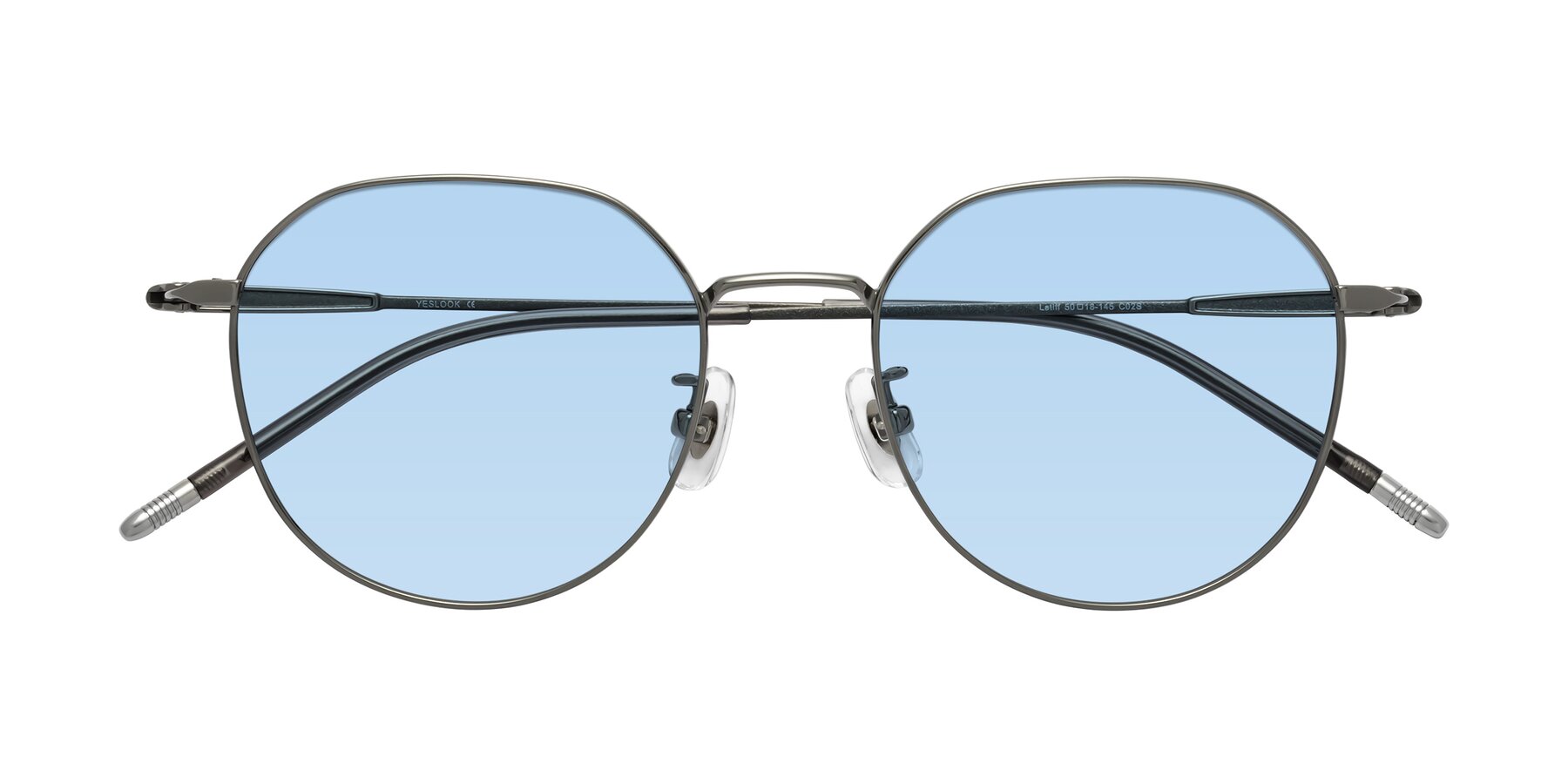 Gunmetal Titanium Round Geometric Tinted Sunglasses with Light Blue Sunwear Lenses