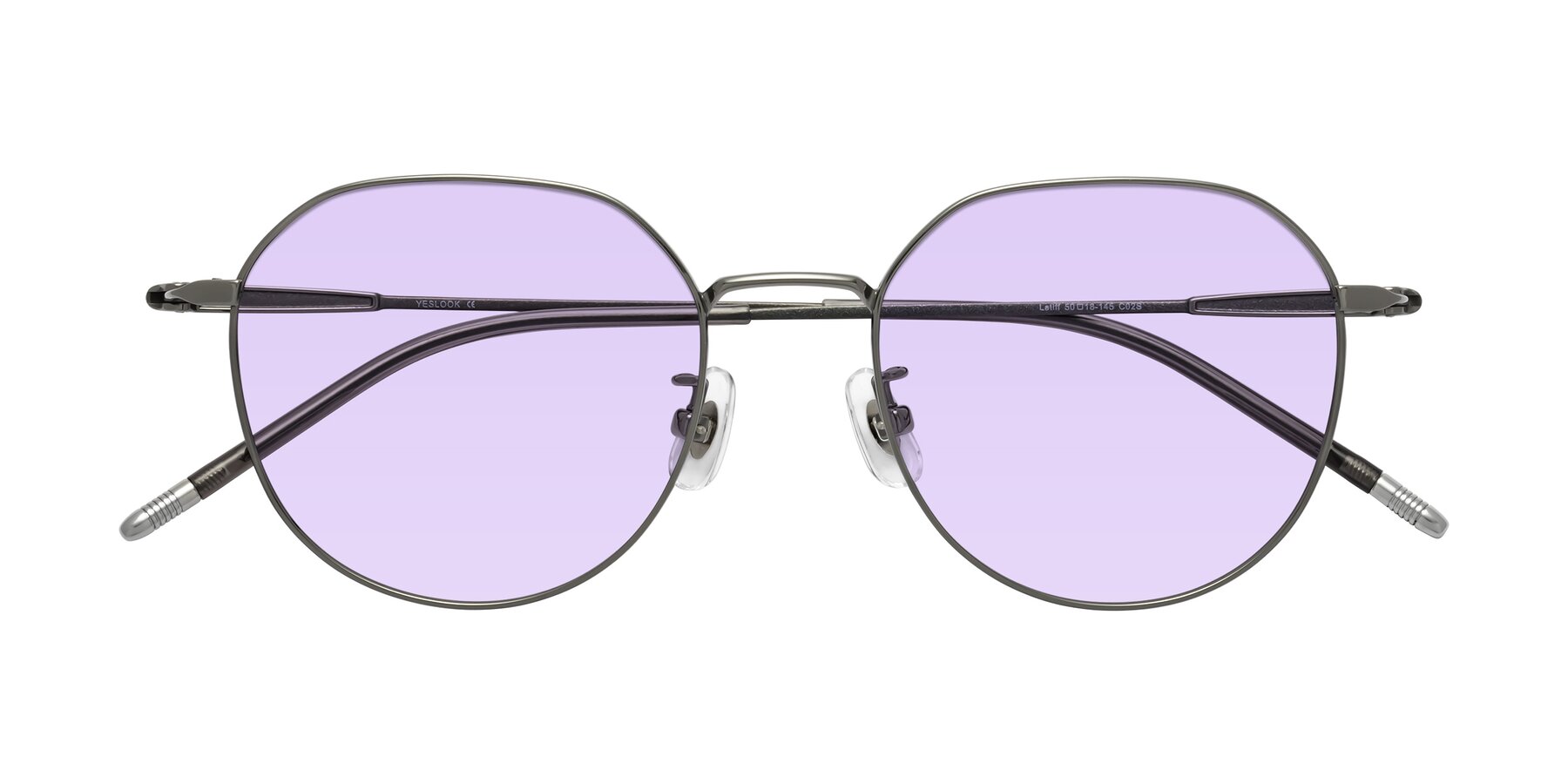 Gunmetal Titanium Round Geometric Tinted Sunglasses with Light Purple Sunwear Lenses