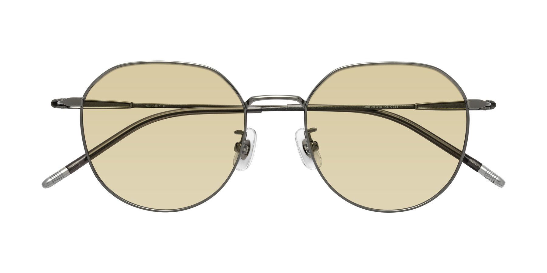 Gunmetal Titanium Round Geometric Tinted Sunglasses with Light Champagne Sunwear Lenses