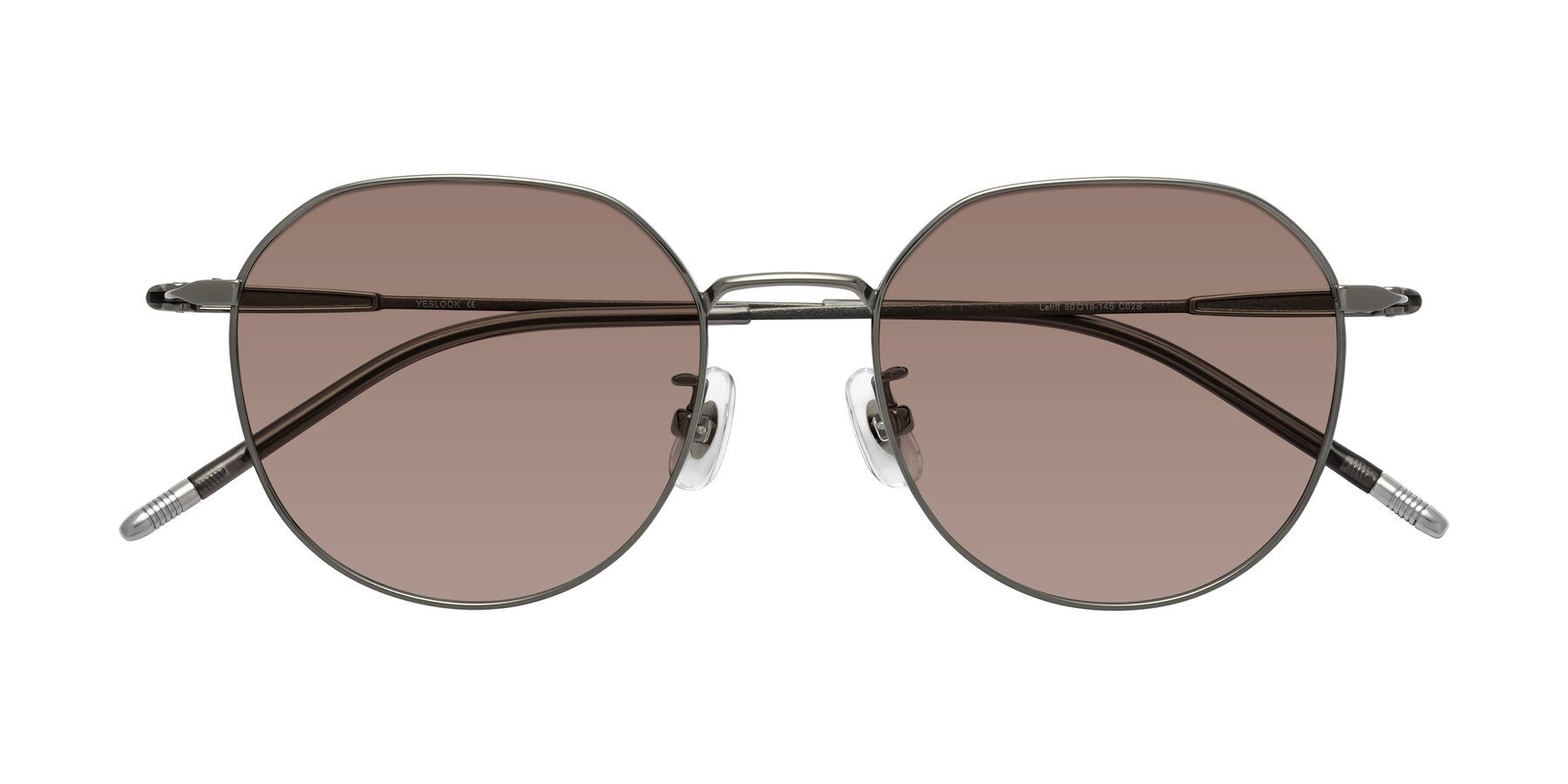 Gunmetal Titanium Round Geometric Tinted Sunglasses with Medium Brown Sunwear Lenses