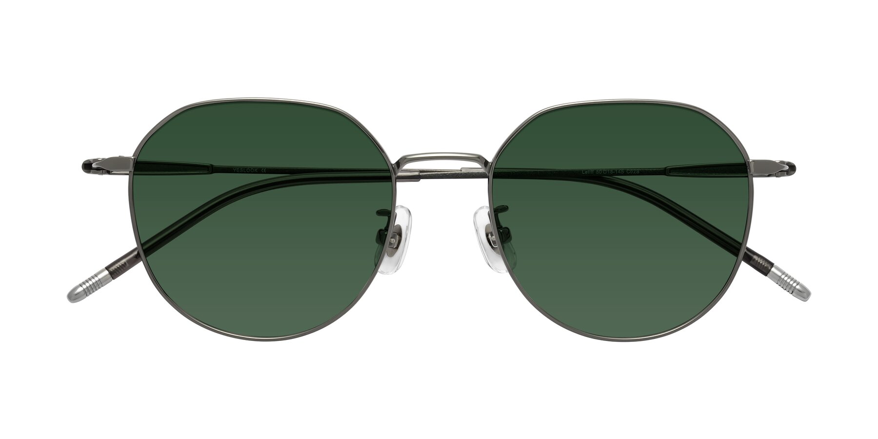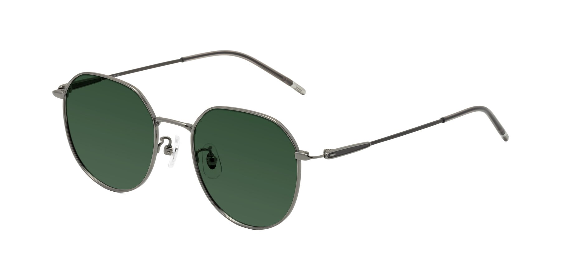 Gunmetal Titanium Round Geometric Tinted Sunglasses with Green Sunwear Lenses