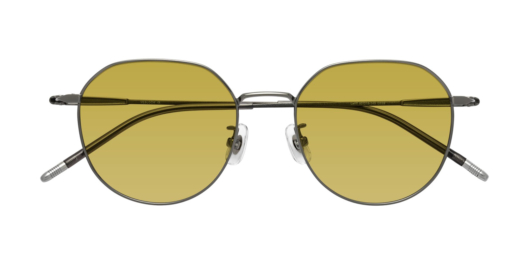 Gunmetal Titanium Round Geometric Tinted Sunglasses with Champagne Sunwear Lenses