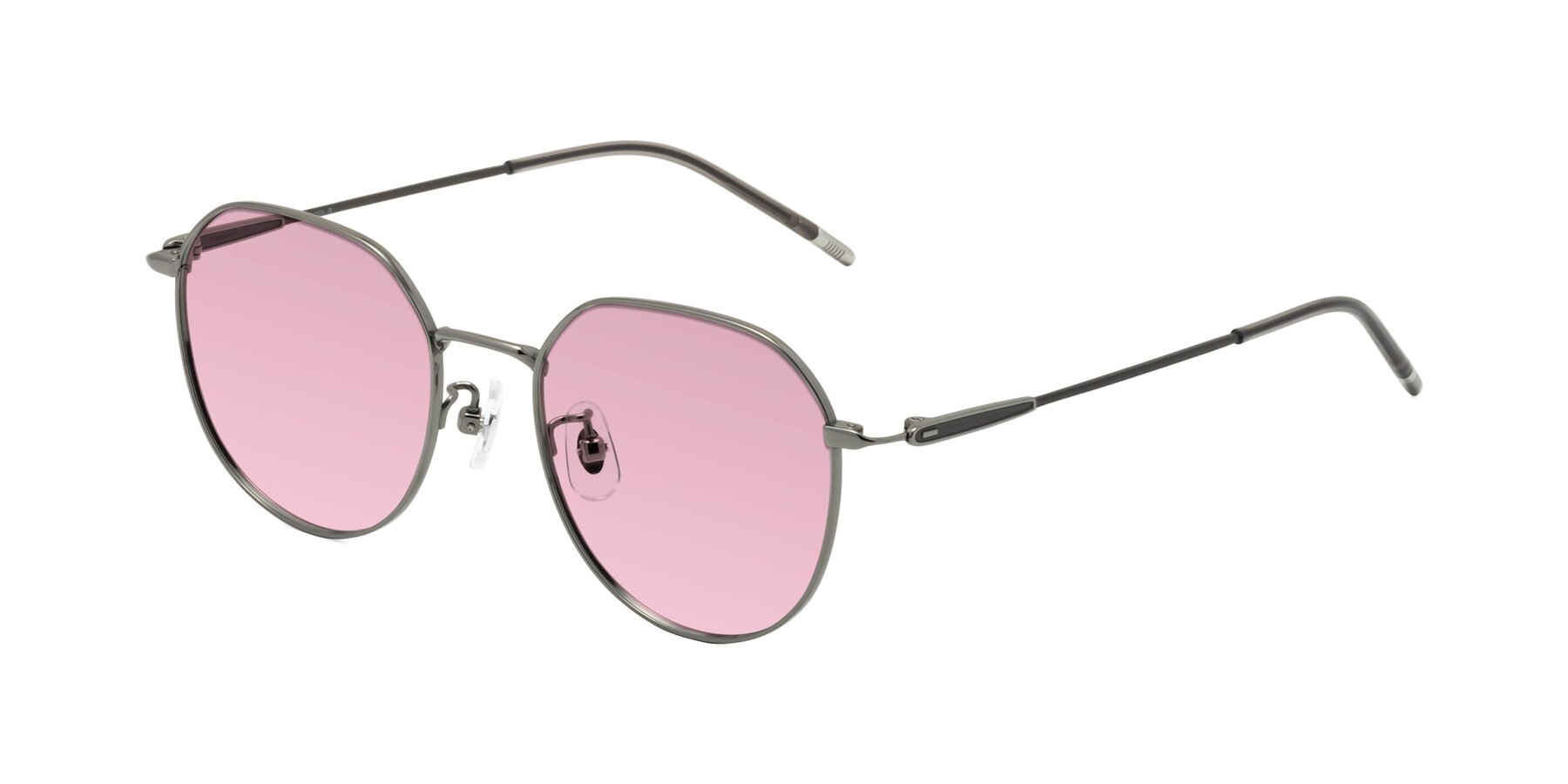 Gunmetal Titanium Round Geometric Tinted Sunglasses with Light Wine Sunwear Lenses